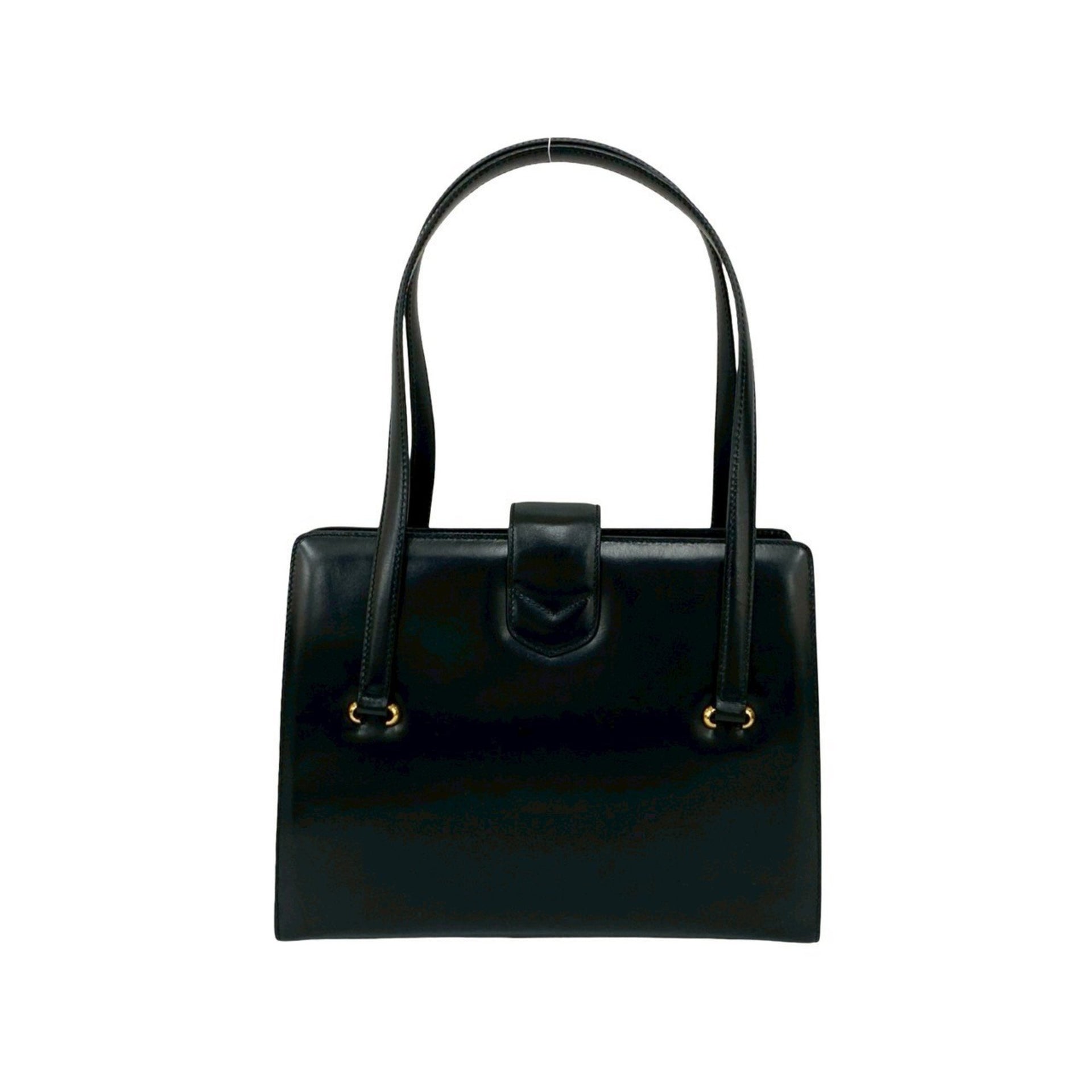 CELINE Triomphe Logo Calf Leather Tote Bag, Semi-Shoulder Handbag, Black 41031