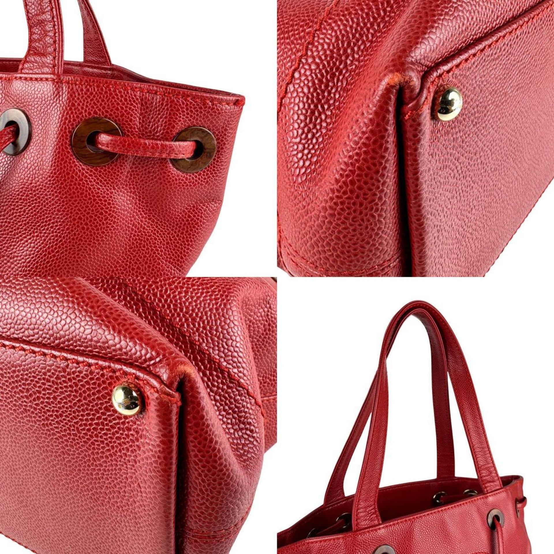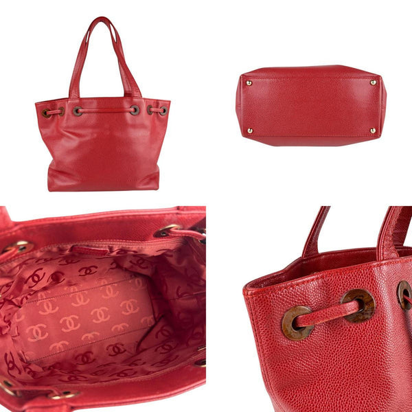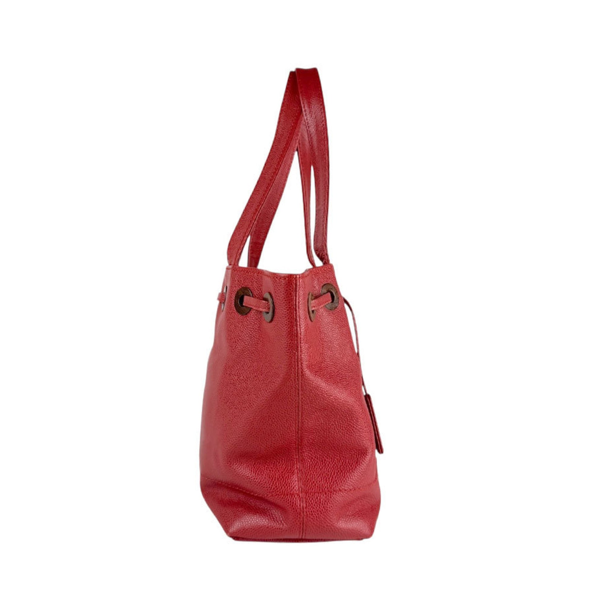 CHANEL Caviar Leather Handbag, Red, Women\'s, Z7294