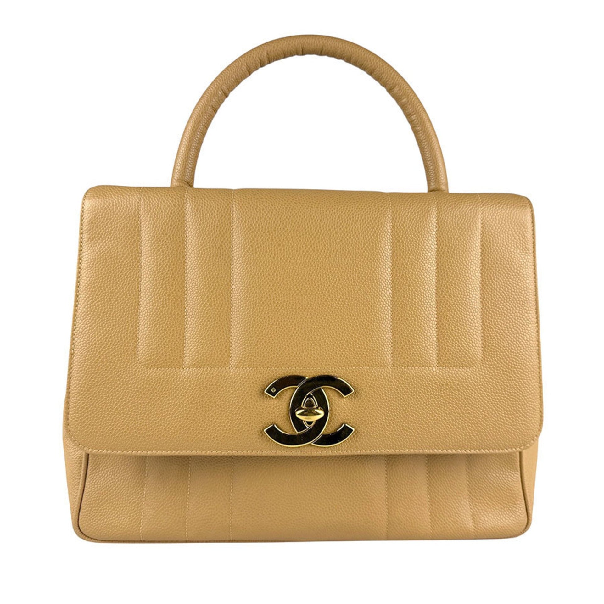 CHANEL Mademoiselle handbag in caviar leather, beige and gold, women\'s, z7185