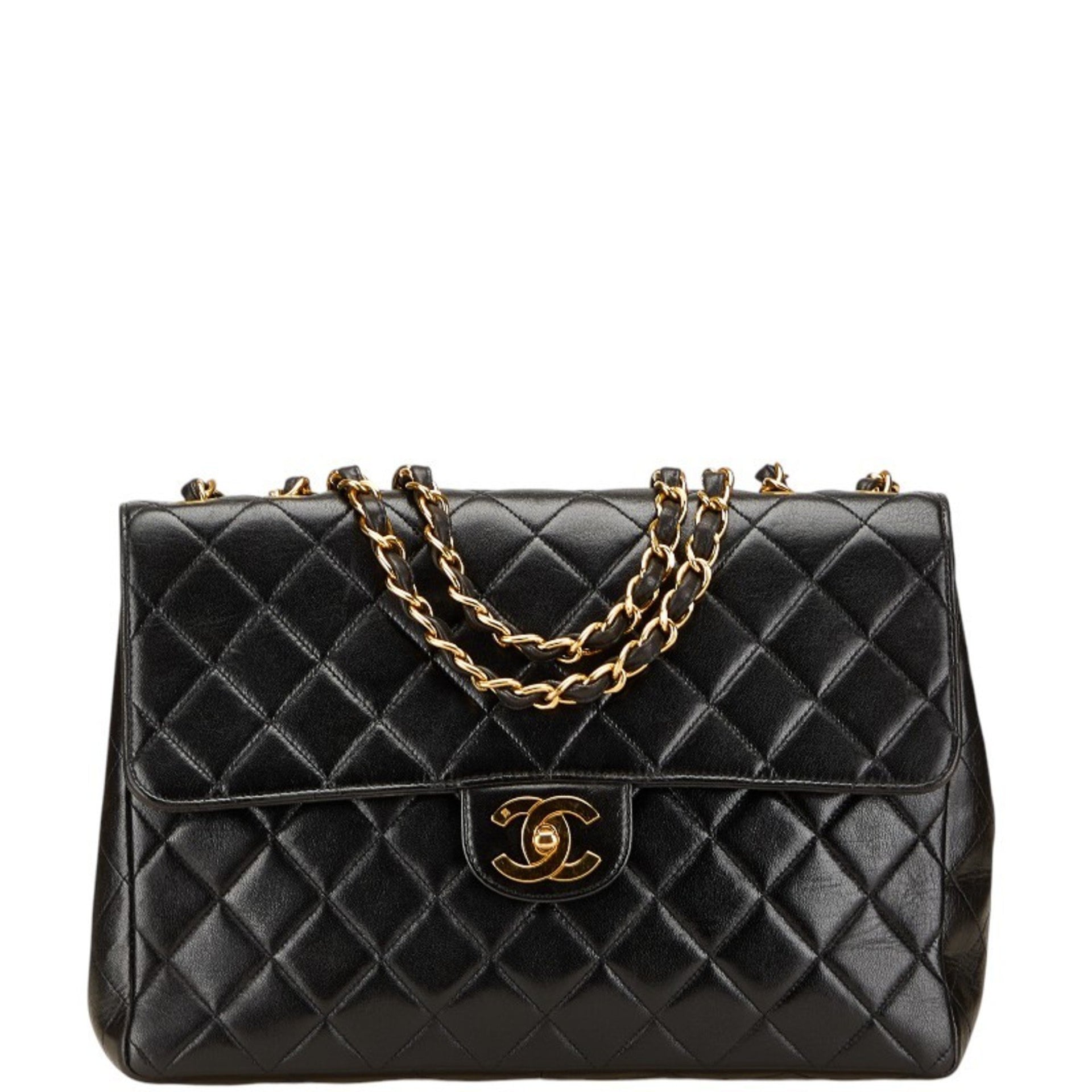CHANEL Matelasse Coco Mark Chain Shoulder Bag Handbag Black Lambskin Women\'s