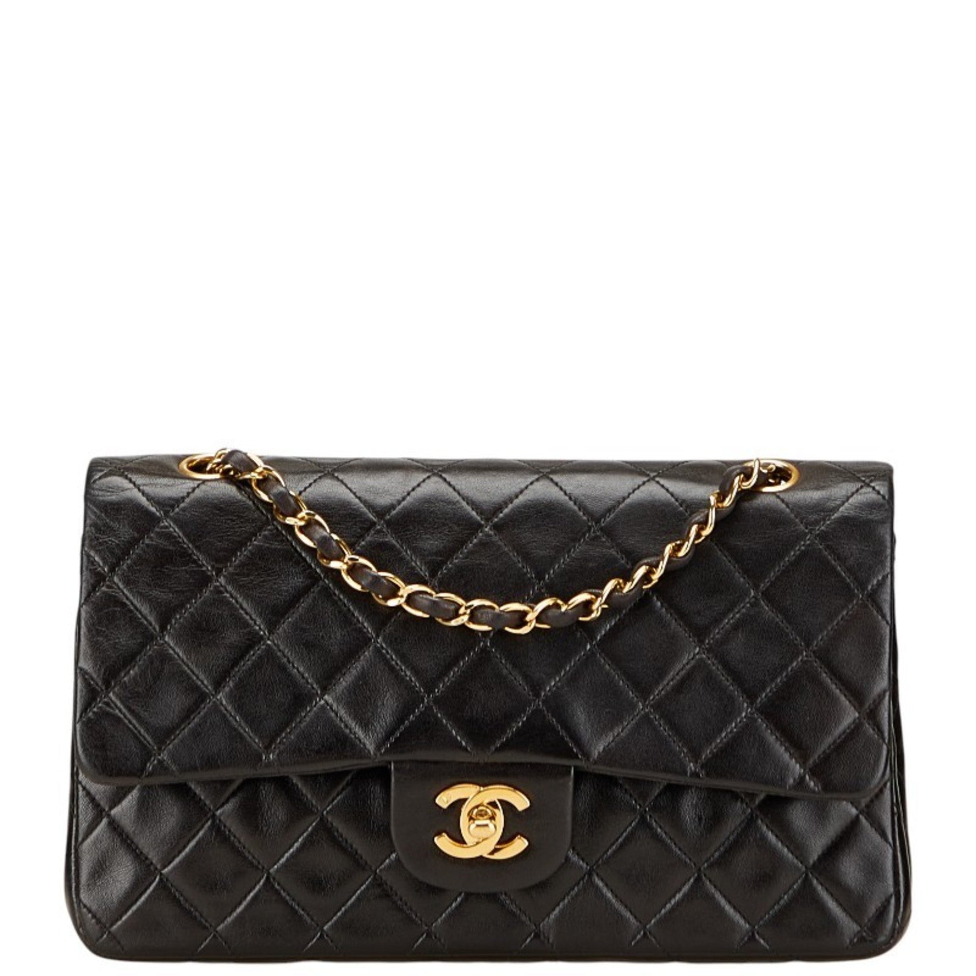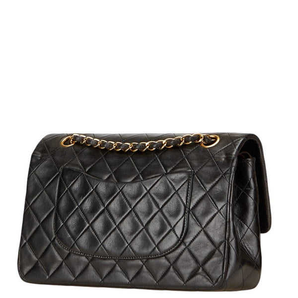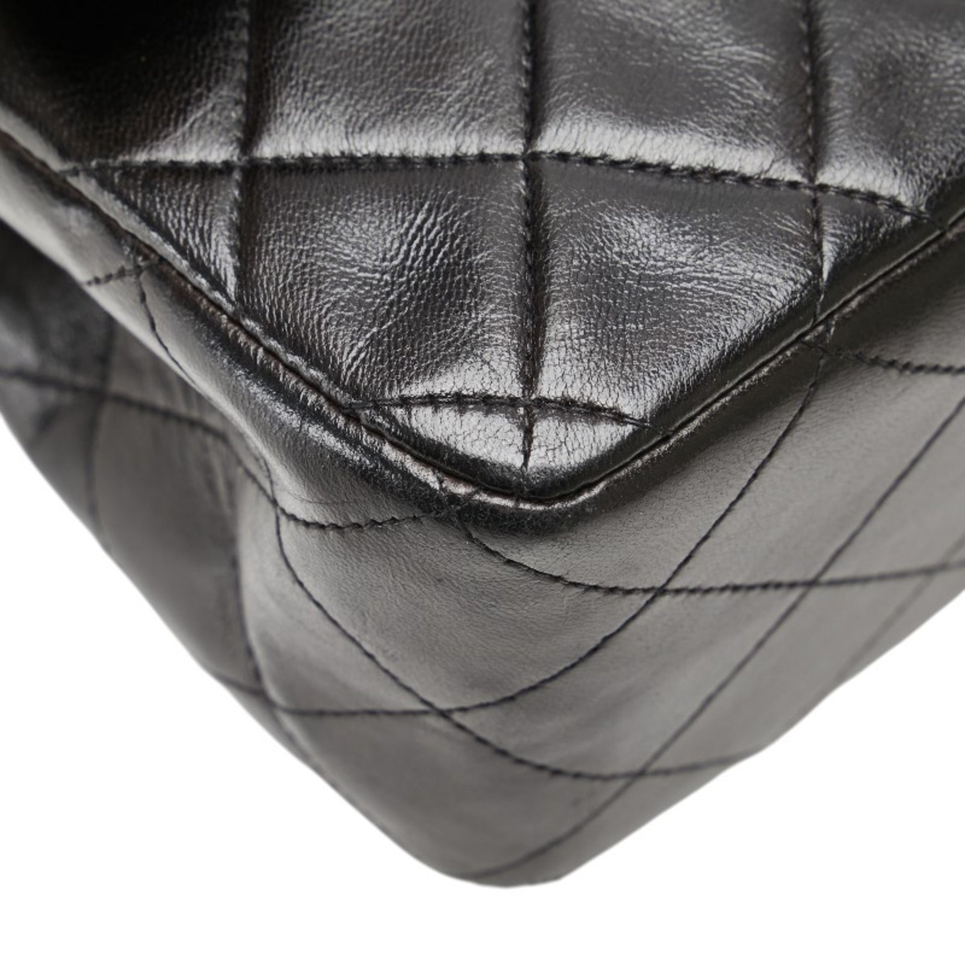 CHANEL Matelasse Coco Mark Double Flap Chain Shoulder Bag Handbag Black Lambskin Women\'s