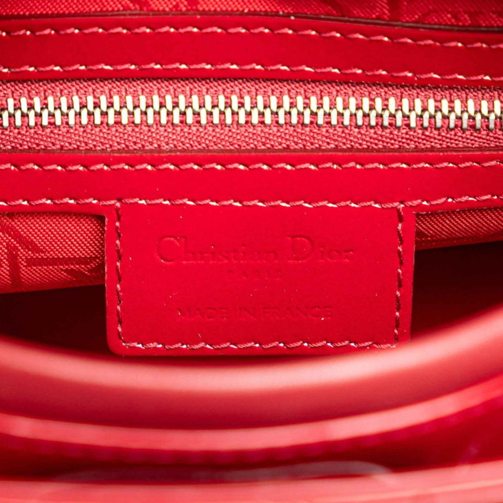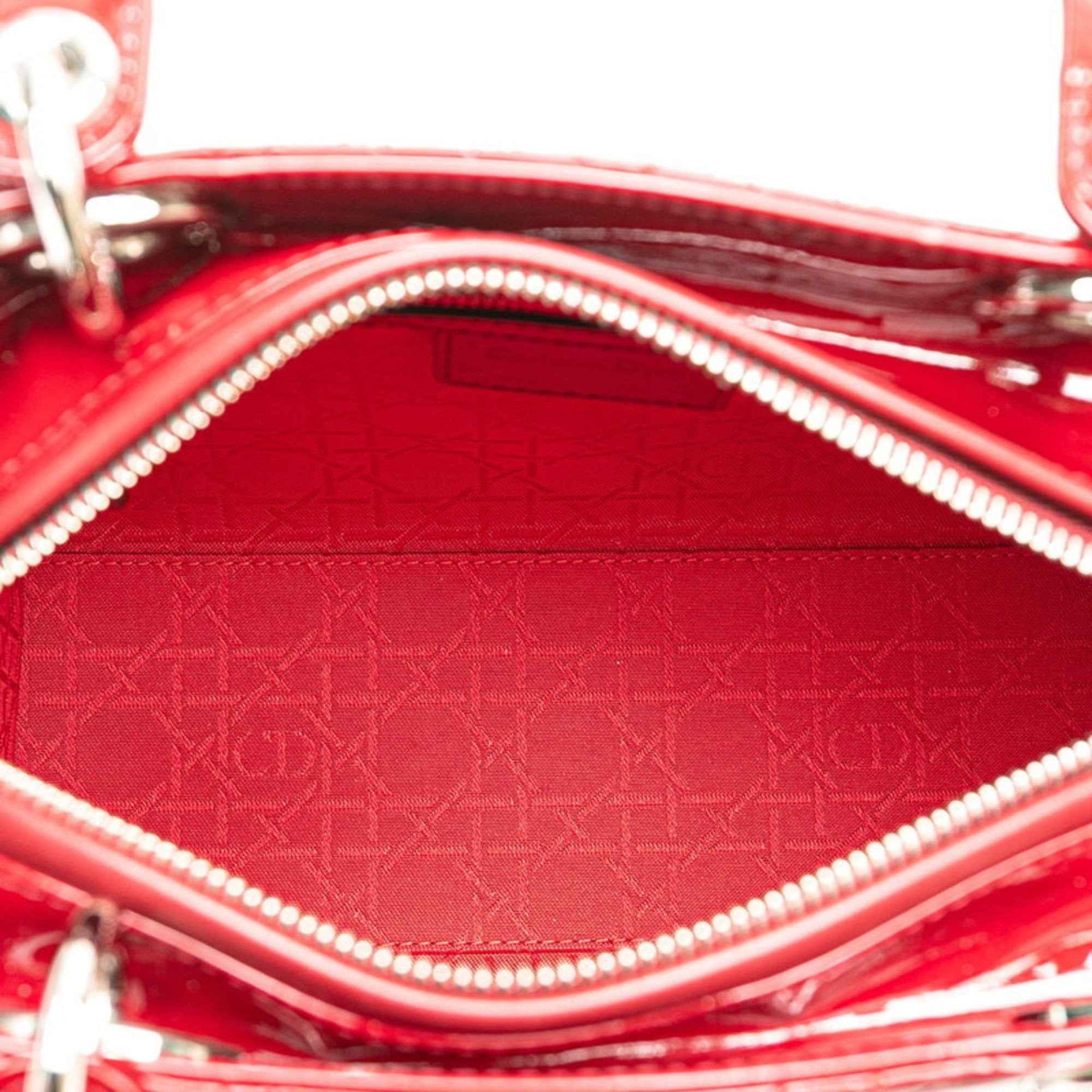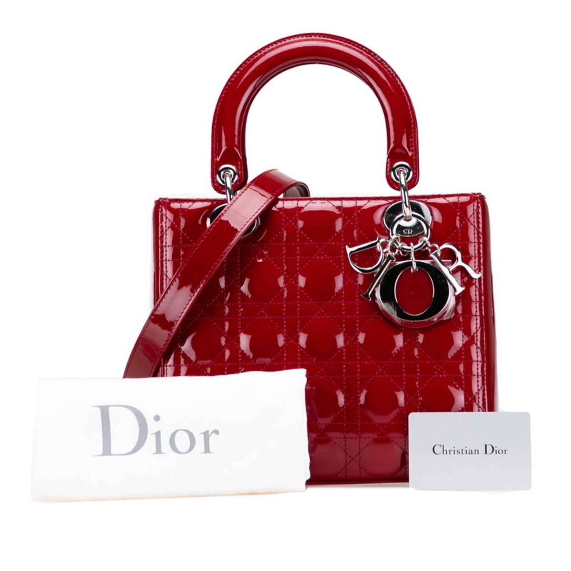 Christian Dior Dior Cannage Lady Medium Handbag/Shoulder Bag, 2-Way, Red Patent Leather, Women\'s,