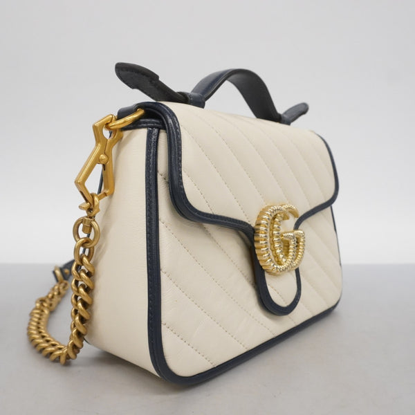 Gucci GG Marmont handbag 583571, leather, white and navy, 2-way bag for women