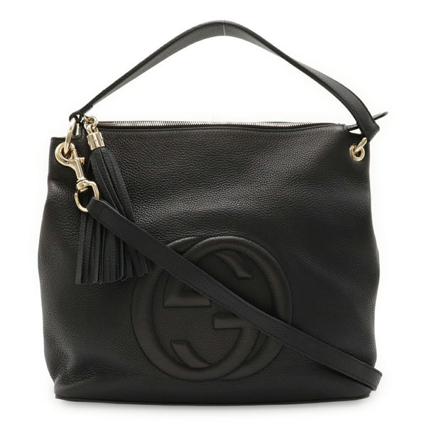 GUCCI Soho Interlocking G Tassel Shoulder Bag/Handbag in Black Leather (408825)