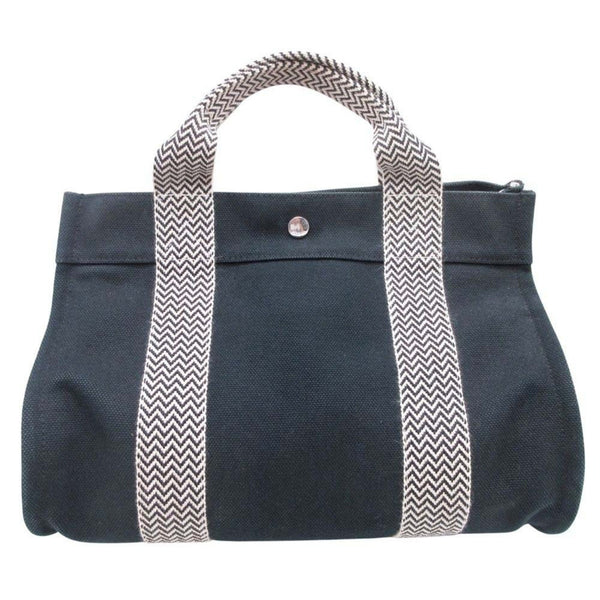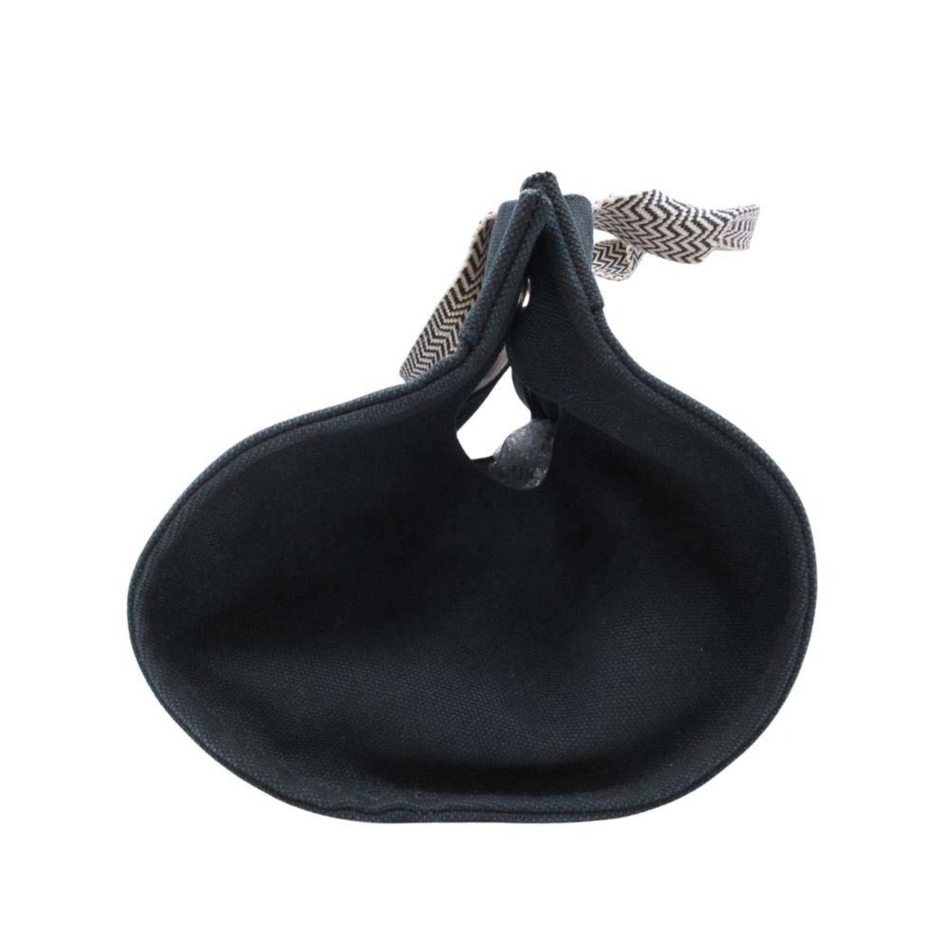 HERMES Cannes PM Handbag Tote Canvas Herringbone with Pouch, Black/Ivory, Women\'s