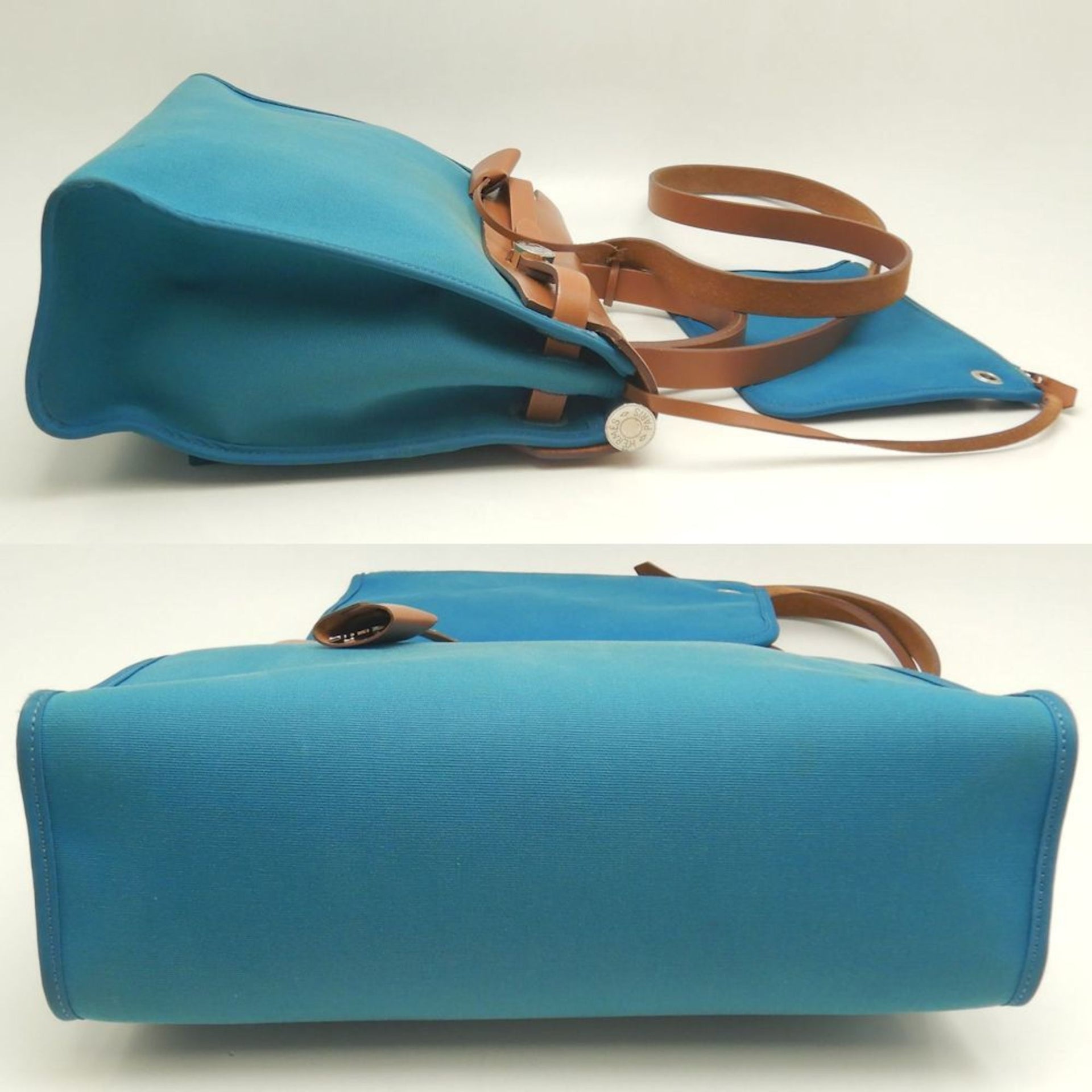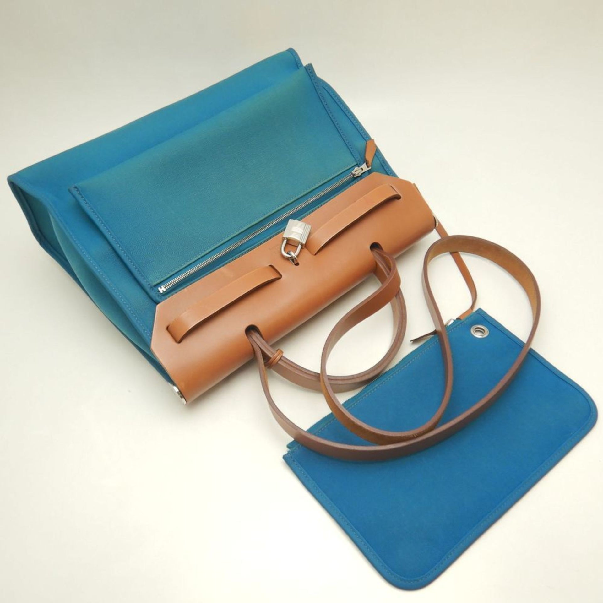 HERMES Hermès Airbag PM Handbag, Toile Officier Leather, Turquoise, Women\'s, 253252