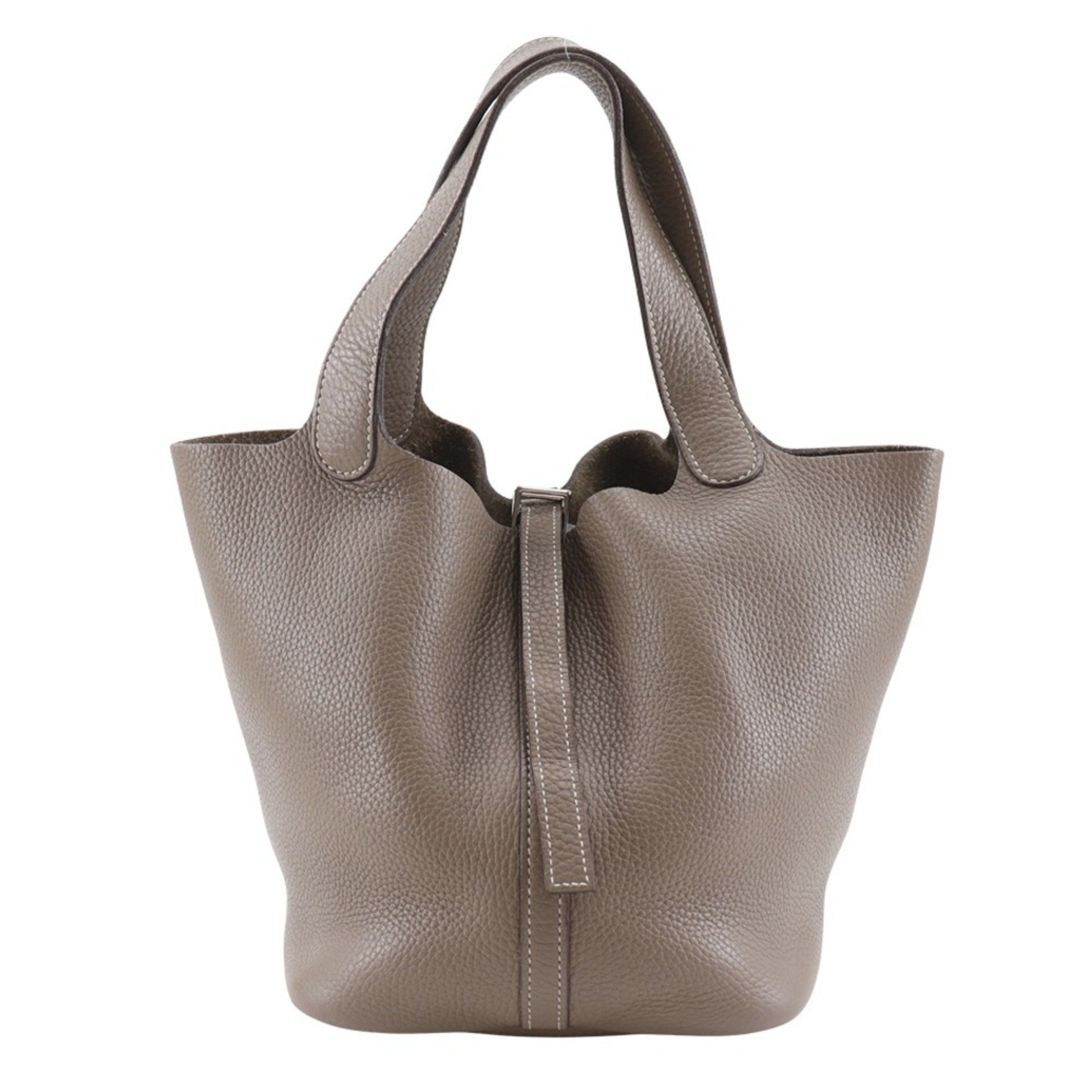 Hermes Hermès Picotin MM Handbag in Taurillon Clemence Etoupe Leather, 2005, with Belt Clasp, Women\'s