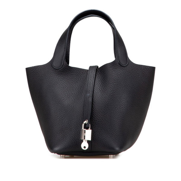 Hermès Picotin Lock PM Handbag in Black with Silver Togo Hardware, Women\'s HERMES