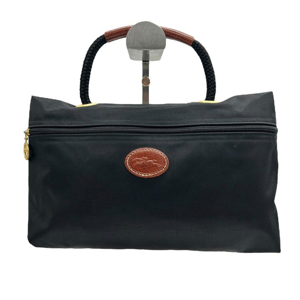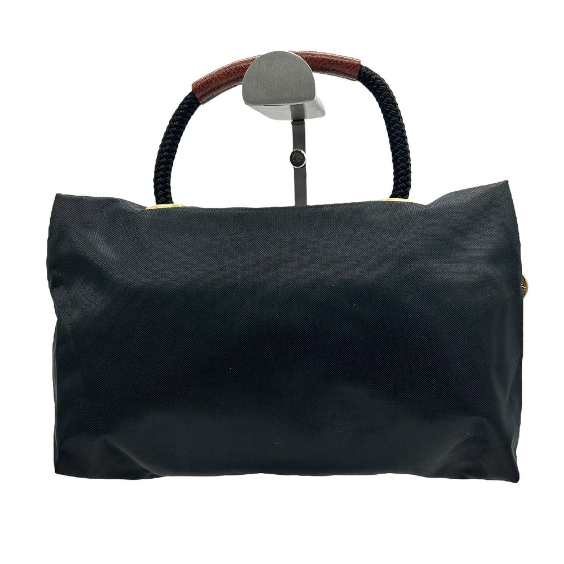Longchamp Nylon and Leather Handbag Tote Bag Black Brown S71