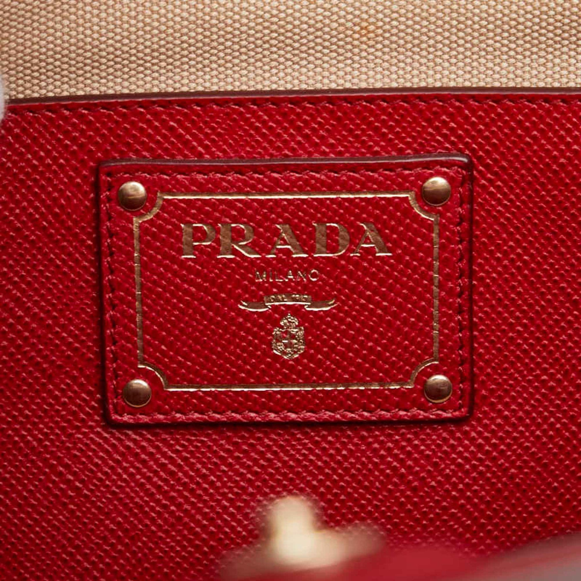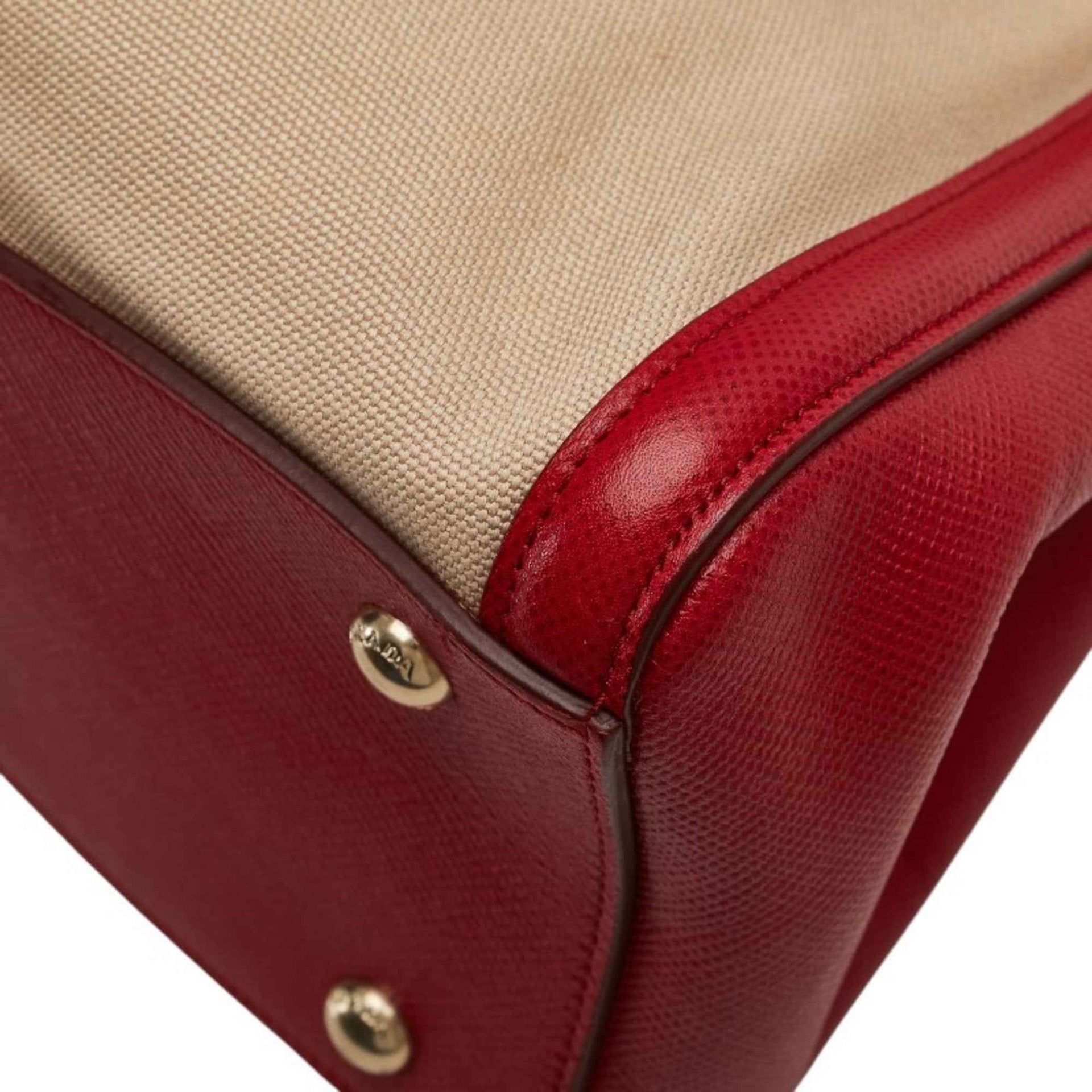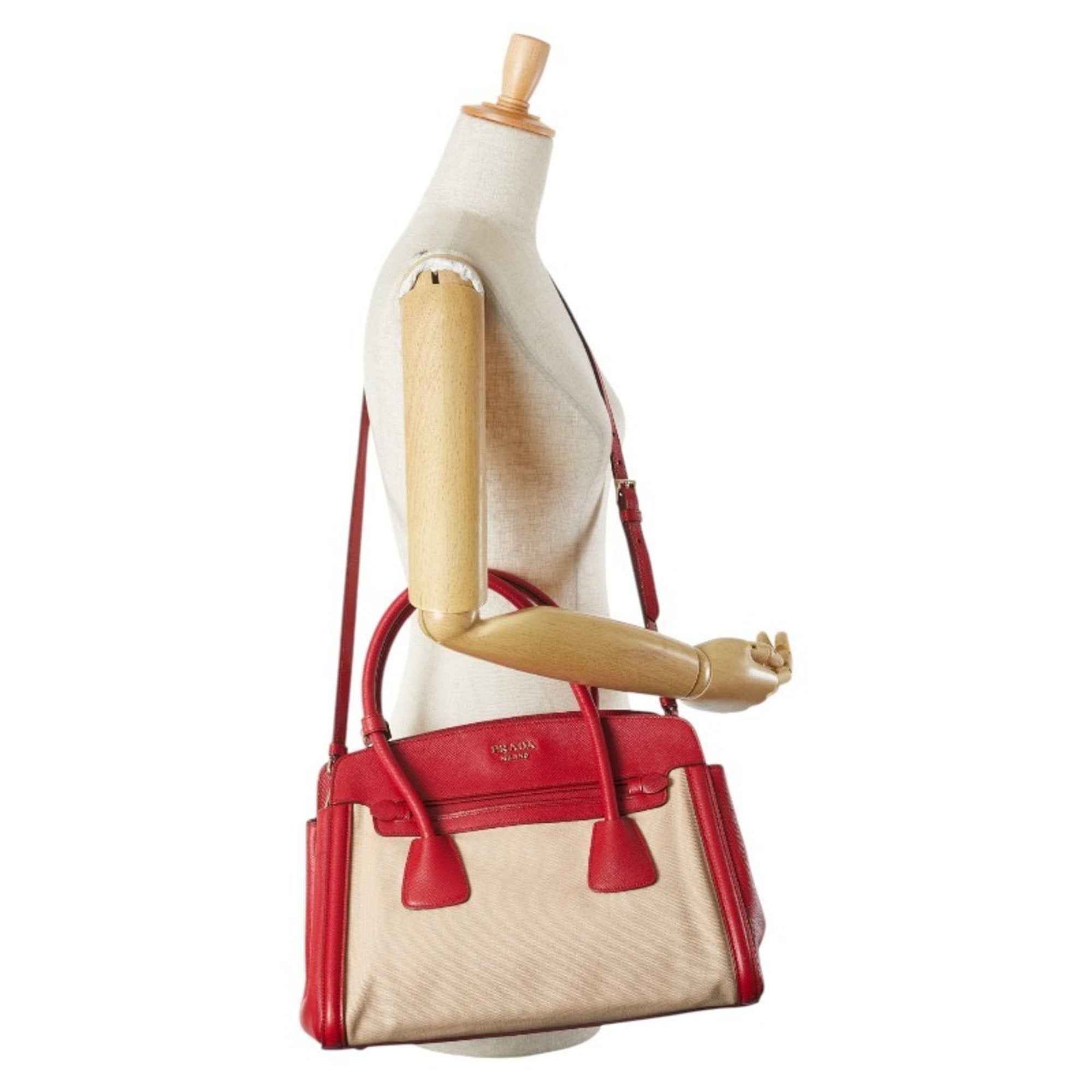 Prada 2-Way Handbag/Shoulder Bag BN2595 Beige/Red Canvas/Saffiano Leather Women\'s PRADA