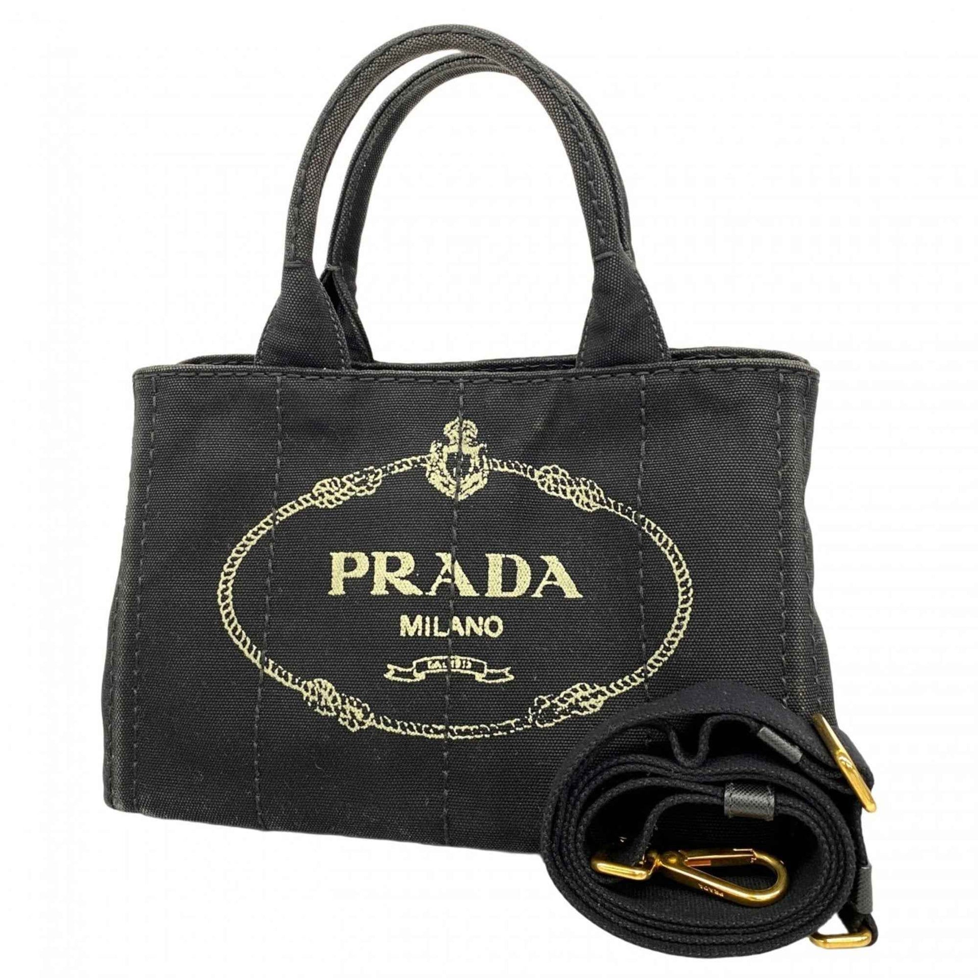 Prada Canapa Canvas Handbag, Black, 2-Way Bag for Women
