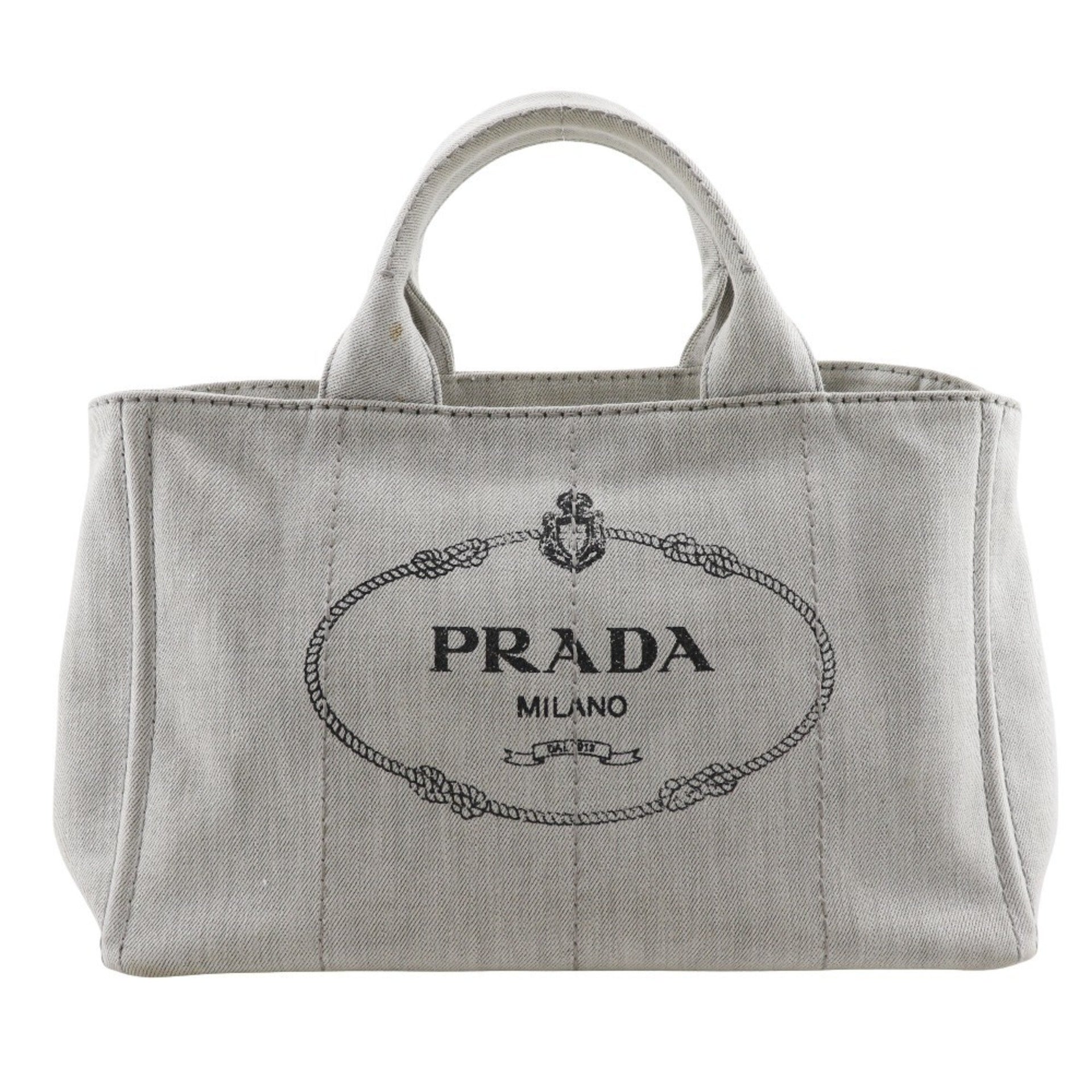 Prada Canapa Handbag with Triangle Plate, 1BG439, Light Gray Denim, 2-Way, Women\'s