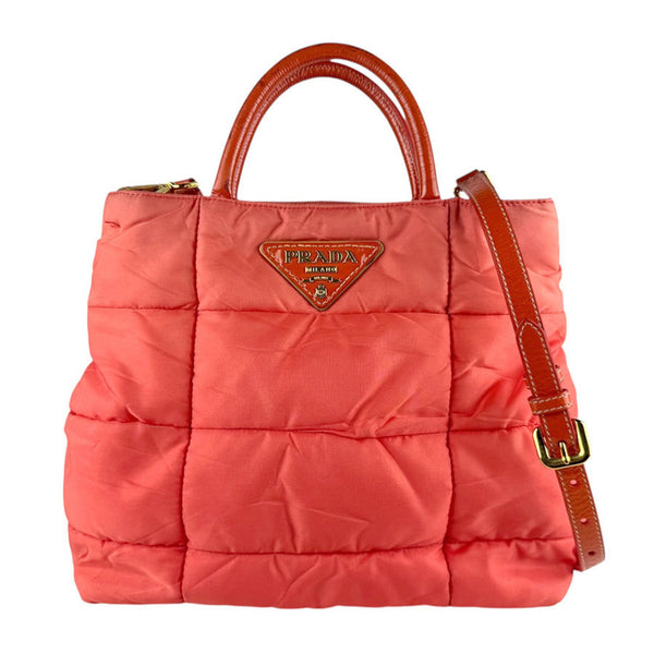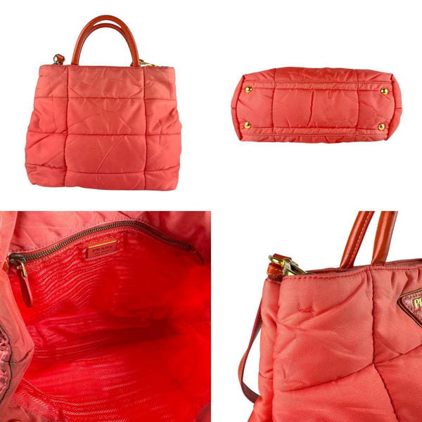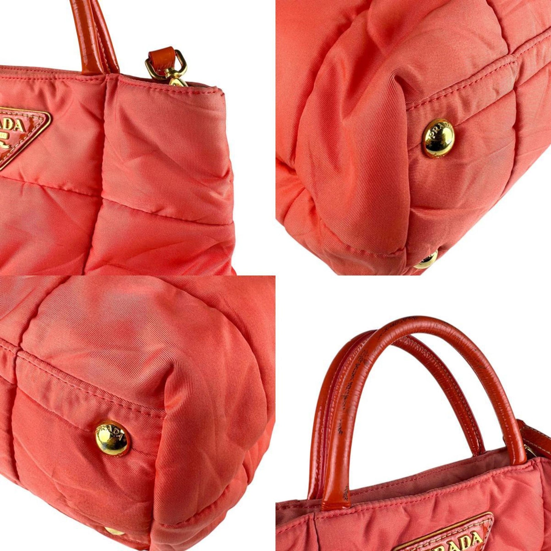 Prada PRADA Handbag Shoulder Bag Nylon Patent Leather Orange Gold Women\'s Z7452