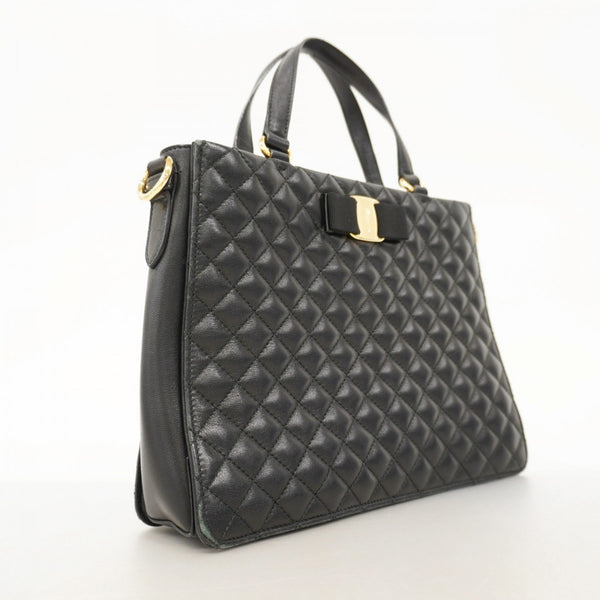 Salvatore Ferragamo Vara Leather Handbag, Black, 2-Way Bag for Women