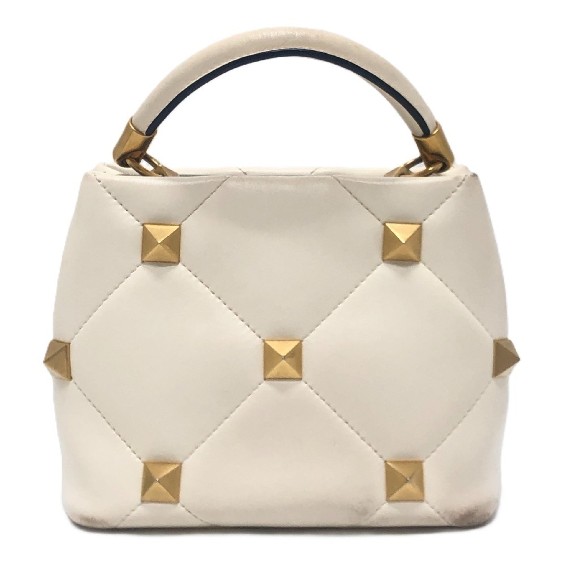 VALENTINO VW0B0197BSF Rockstud Roman Stud Leather Handbag in White