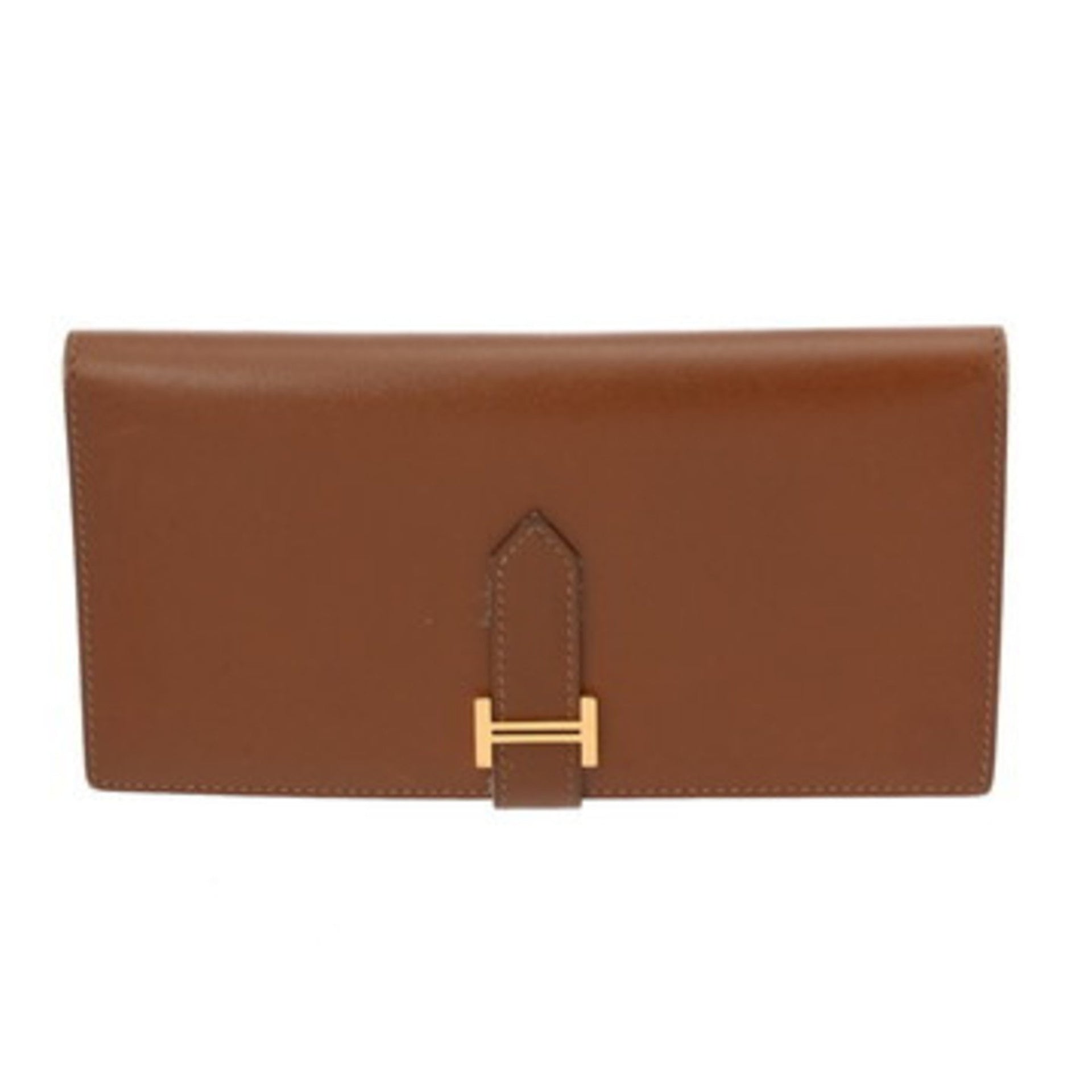 HERMES Bearn Classic Fauve L Stamp (circa 2008) Women\'s Box Calf Leather Long Wallet