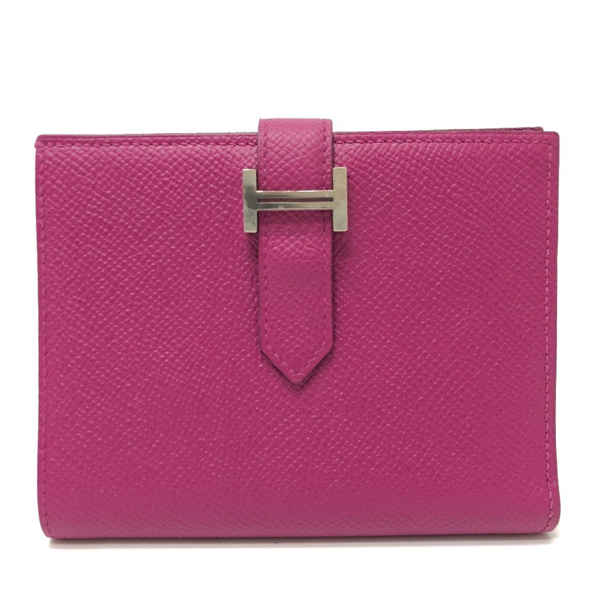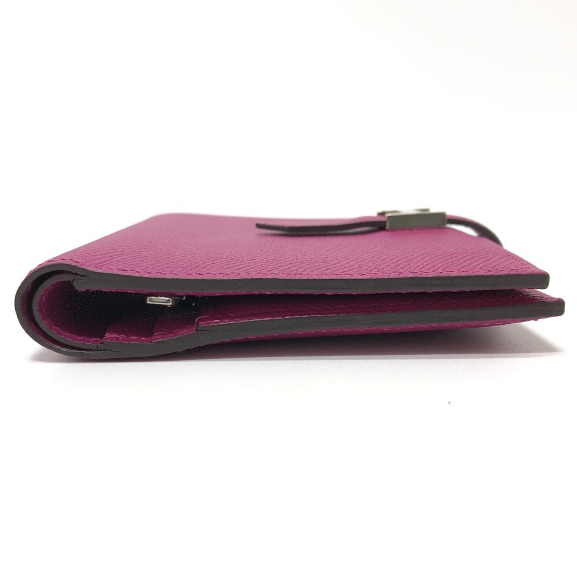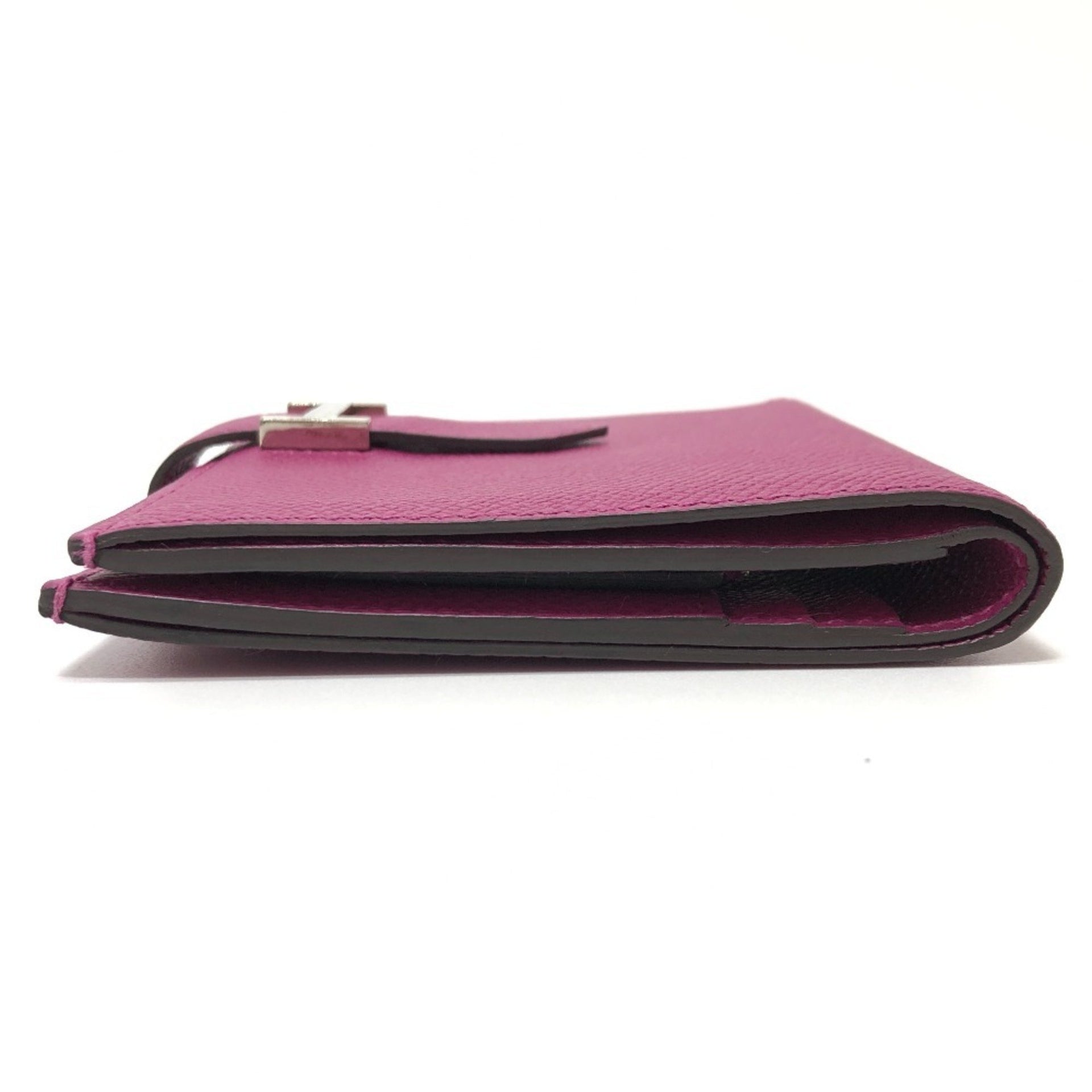 HERMES Bearn Compact Wallet with H Hardware, Bi-fold Wallet, Epsom Leather, Women\'s, Rose Purple