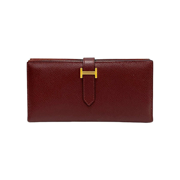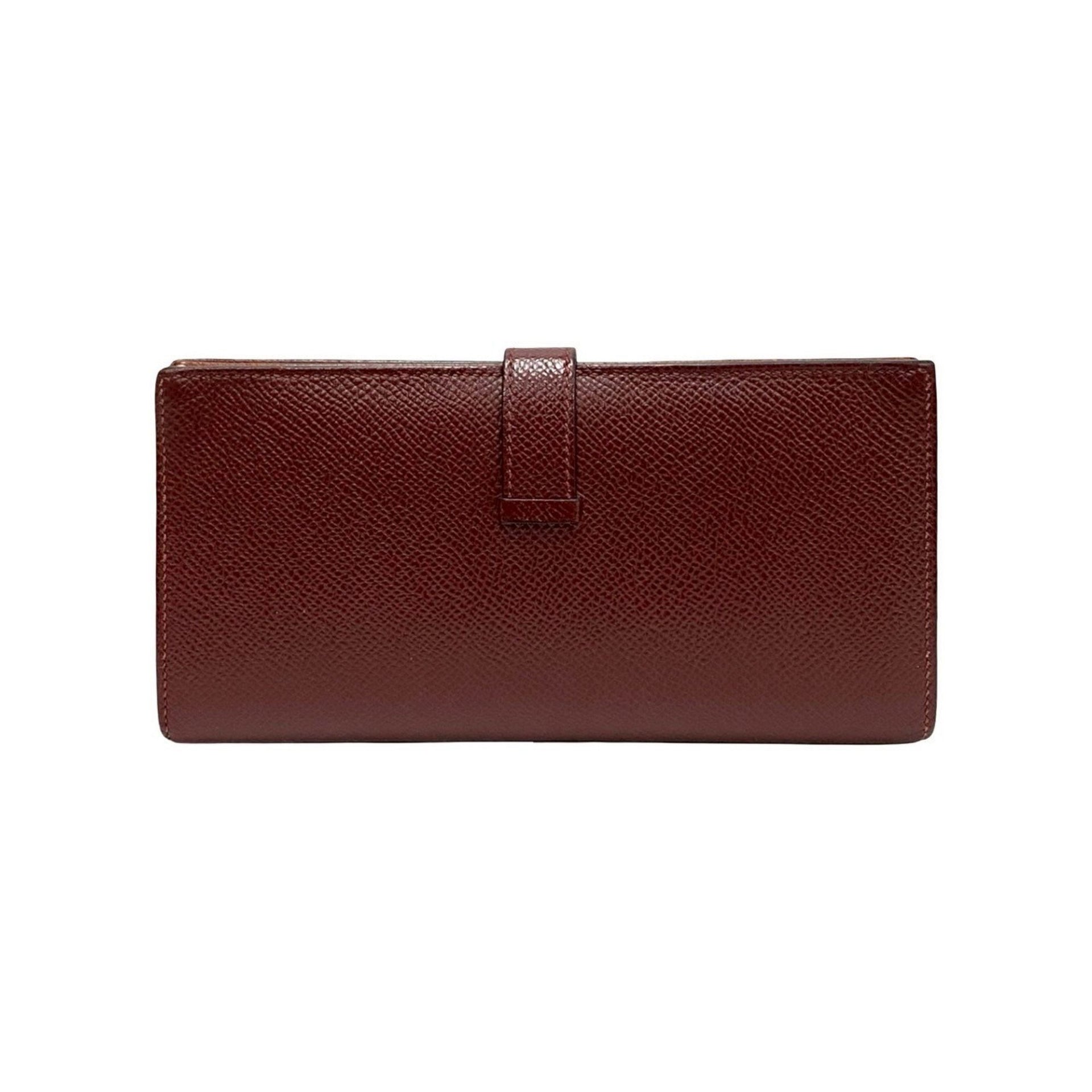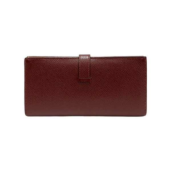 HERMES Bearn Soufflet Leather Bifold Long Wallet in Bordeaux Brown (38474)