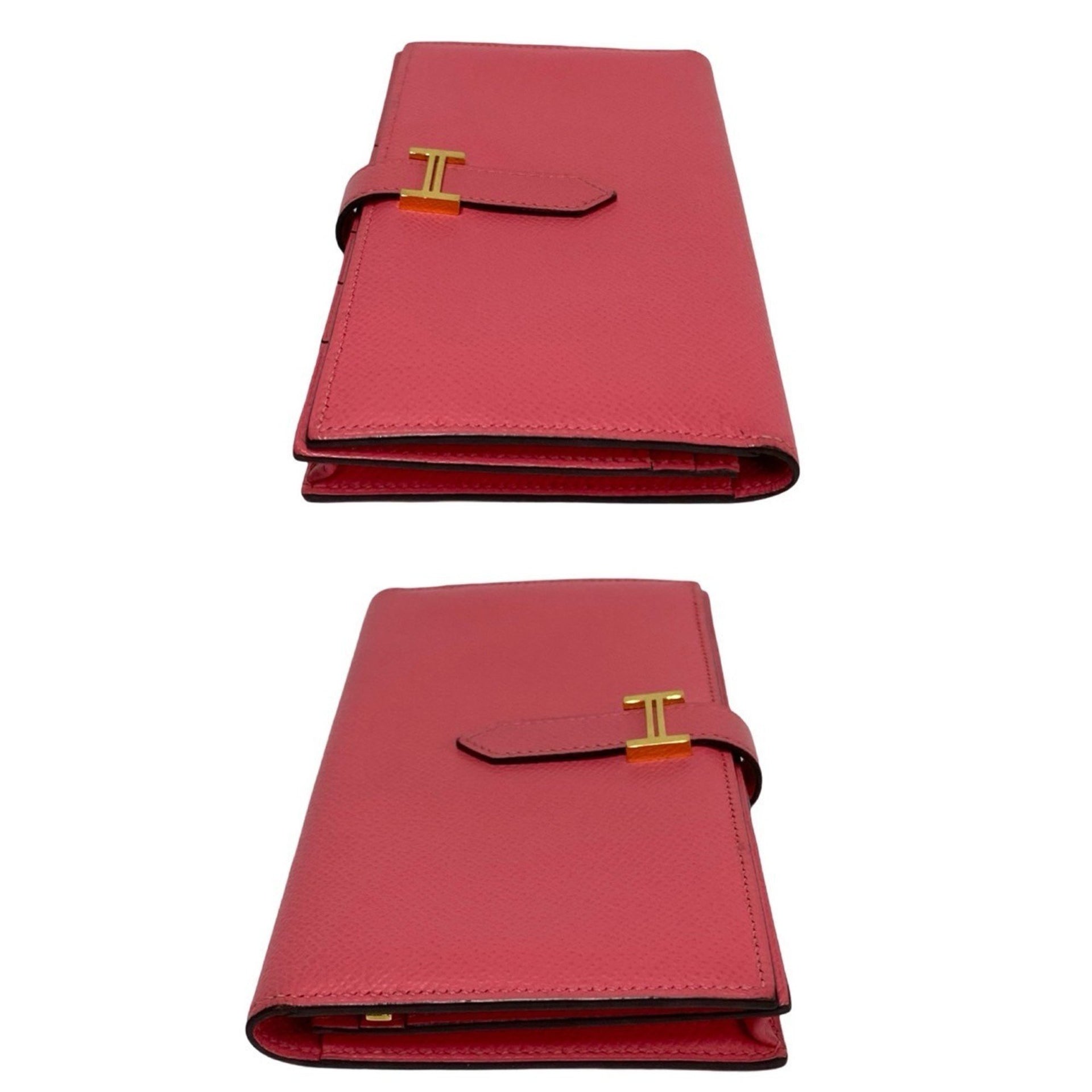 HERMES Bearn Soufflet Leather Bifold Long Wallet with Epsom and Coin Purse, Pink, 33928