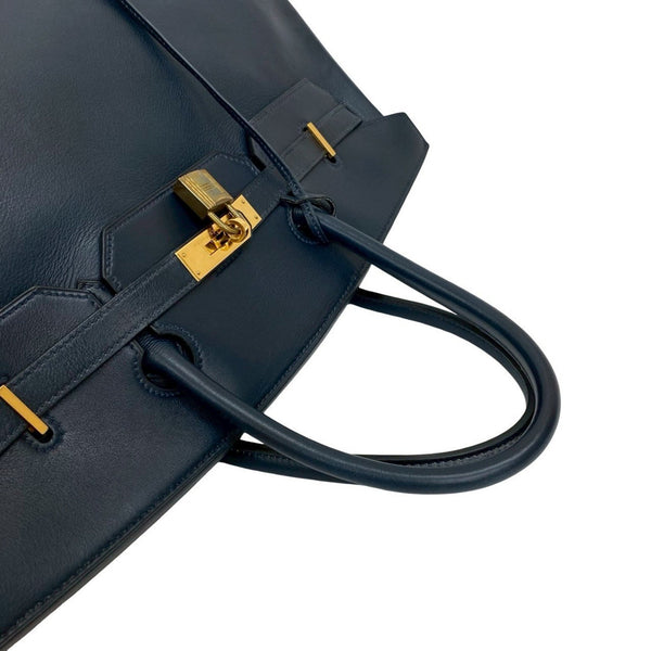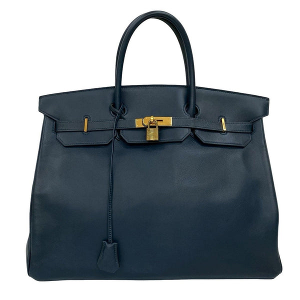 HERMES Birkin 40 Veau Gulliver Leather Handbag/Business Bag, A4 Size, Navy, 17832
