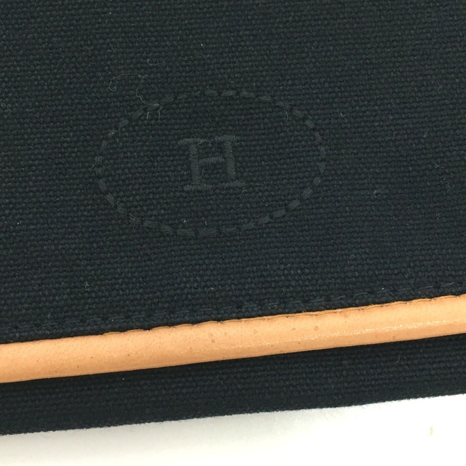 HERMES Bolide Cotton Travel Pouch, Tri-Fold Canvas, Unisex, Black
