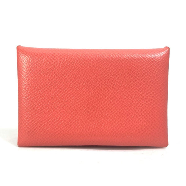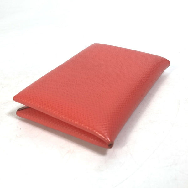 HERMES Calvi Bifold Business Card Case, Pass Epson, Women\'s, Rose Texas, Red