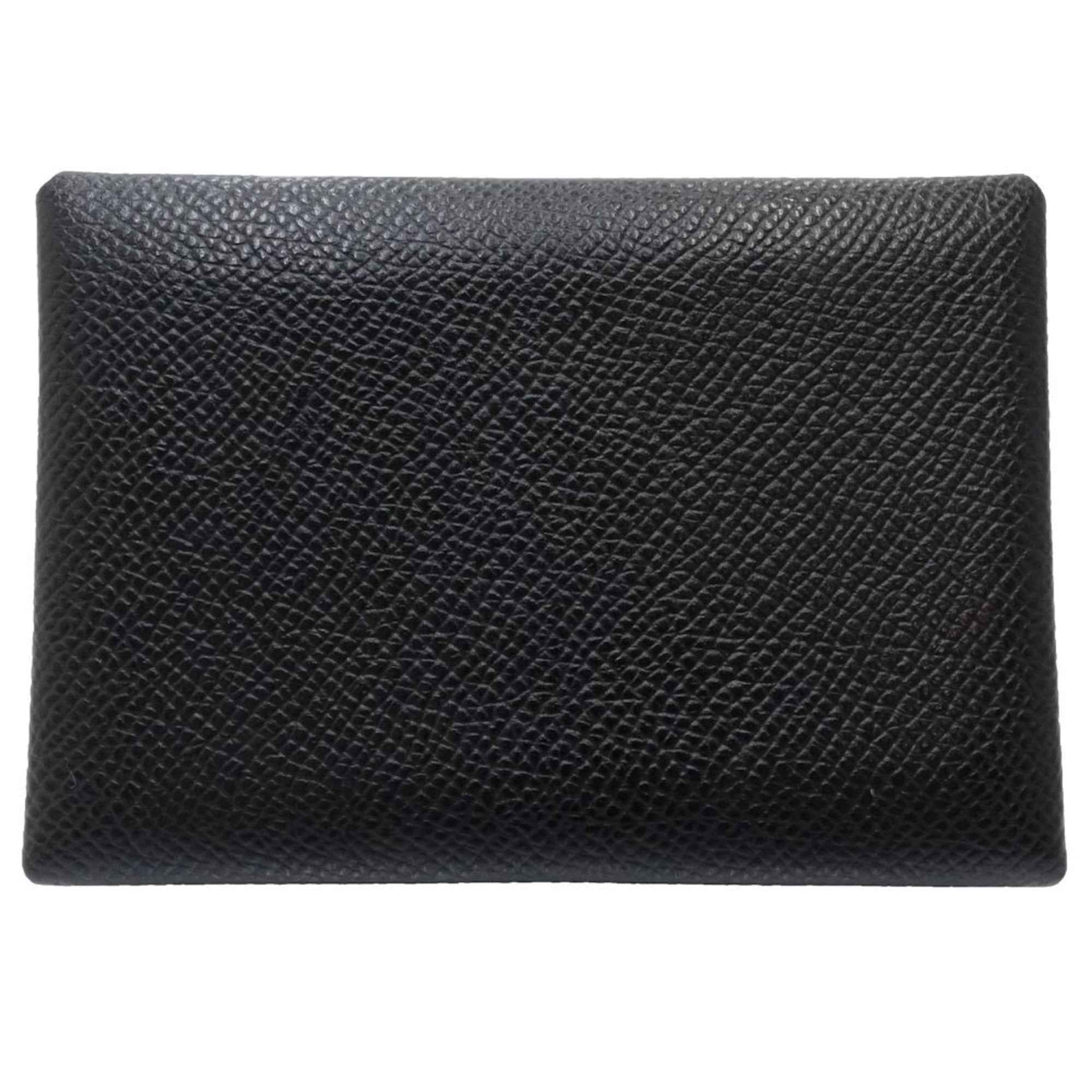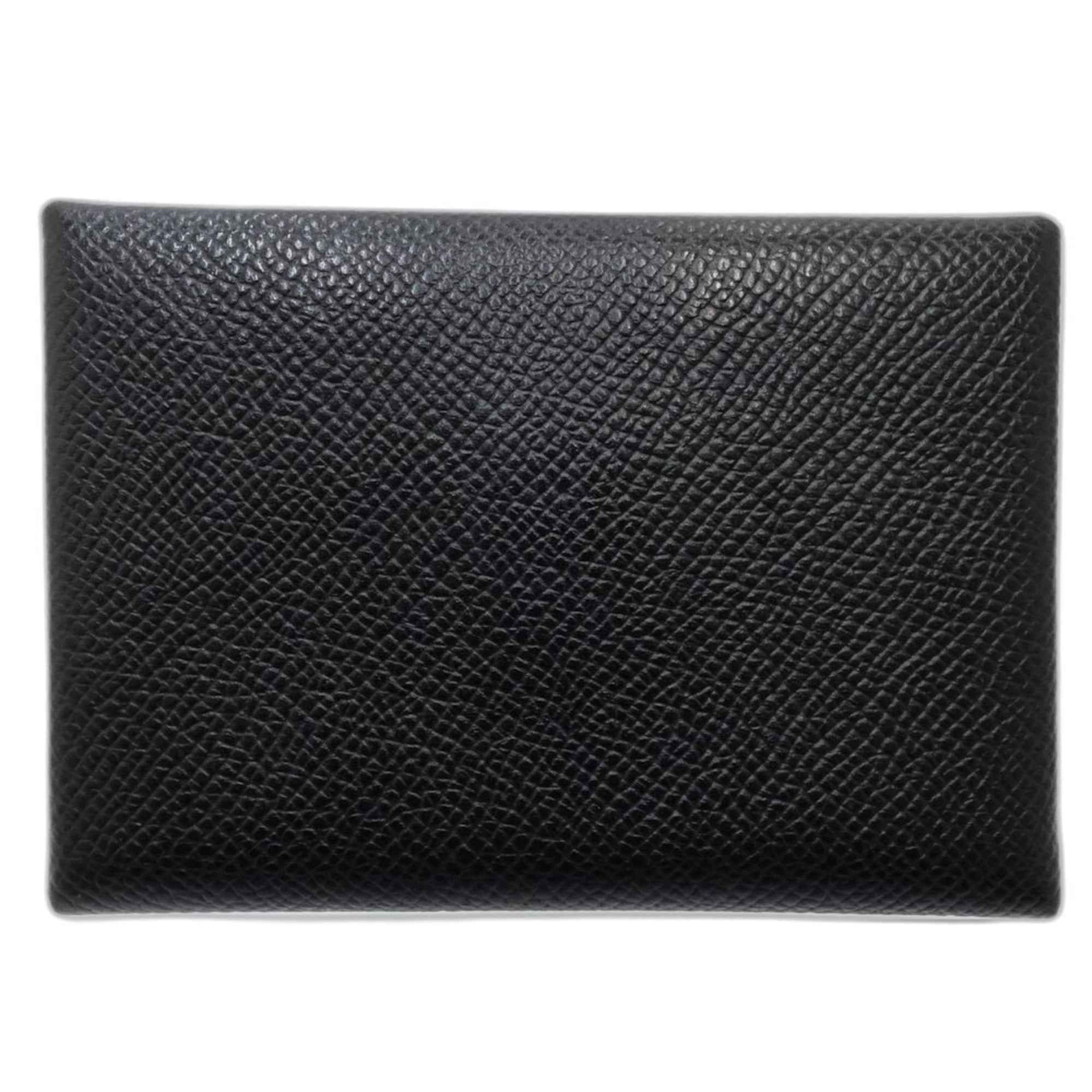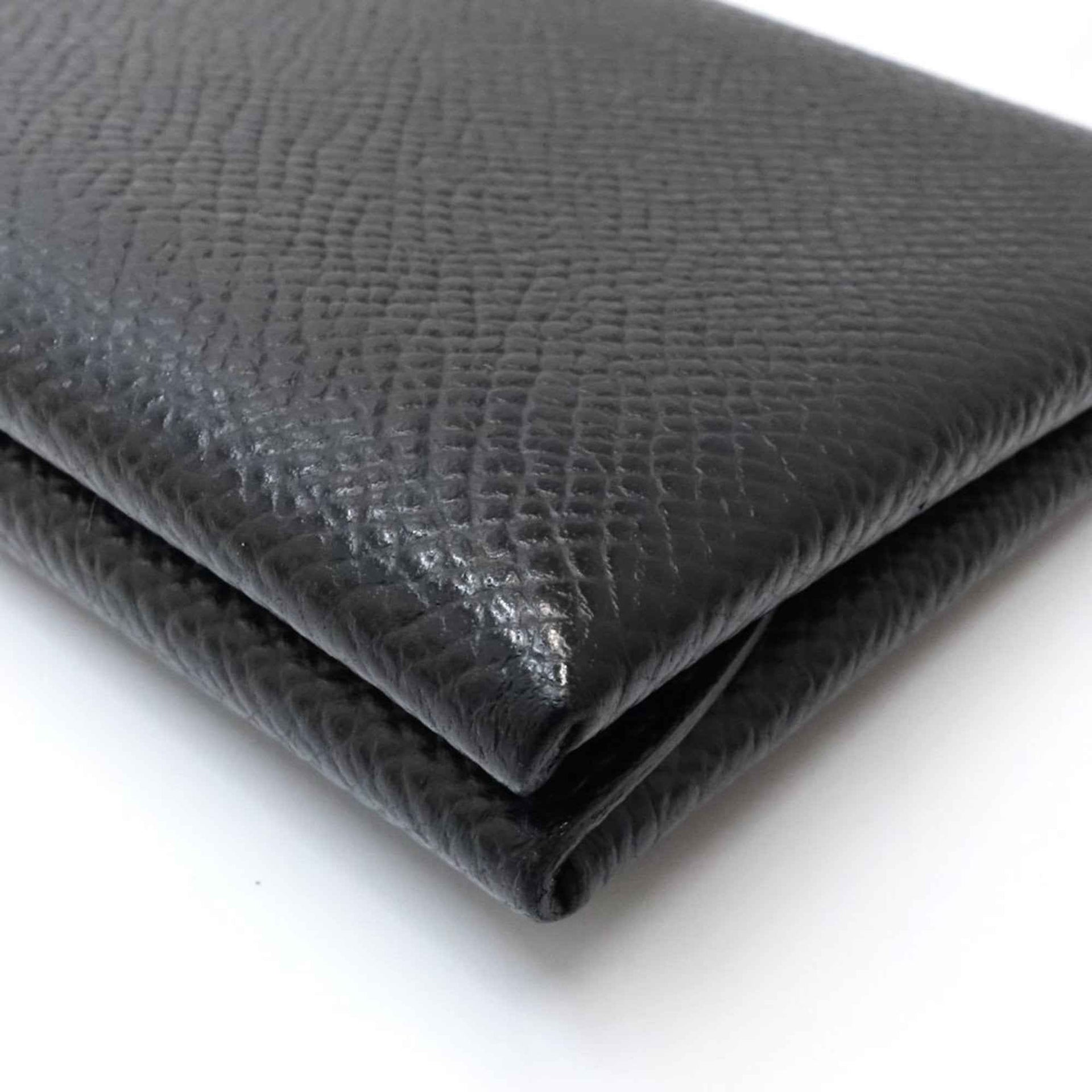 HERMES Calvi Duo Wallet/Coin Case, U Stamp, Epsom Leather, Black, Women\'s, 181592