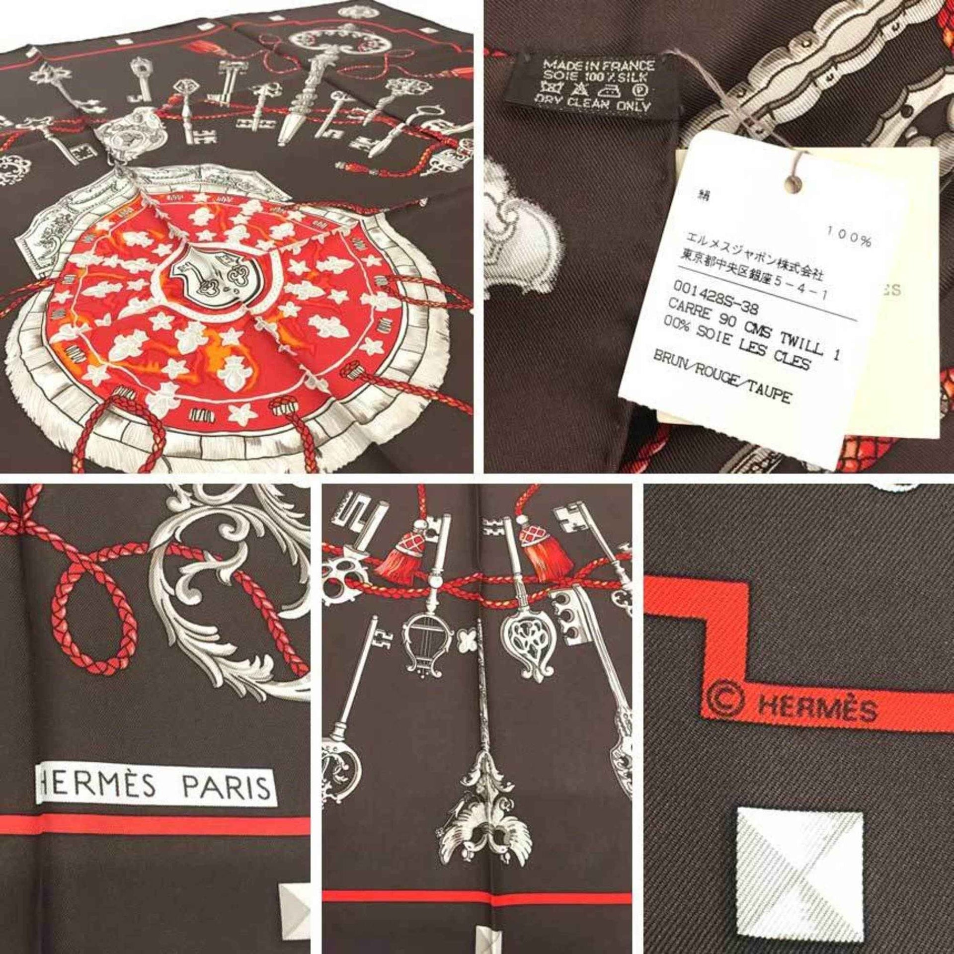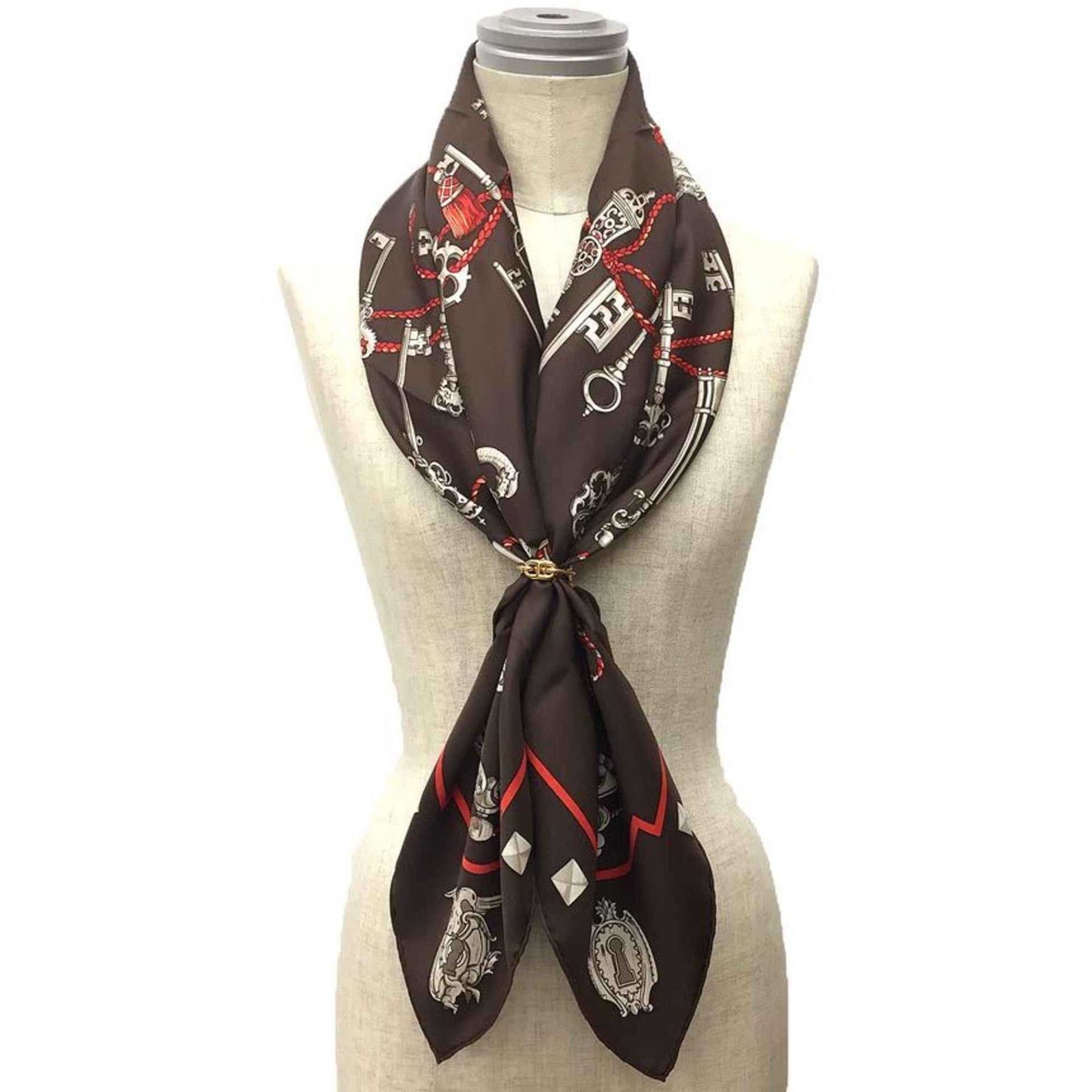 HERMES Carré 90 LES CLES Scarf, Key Pattern, 001428S-38, Silk, Brown, aq11943