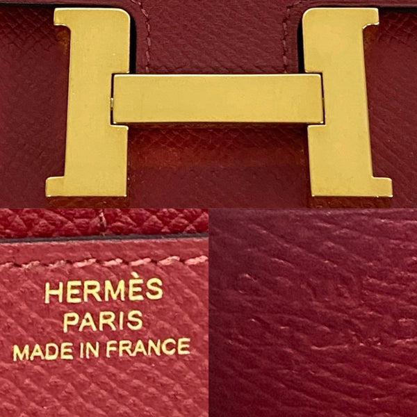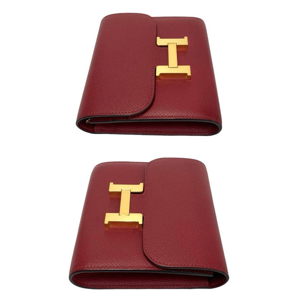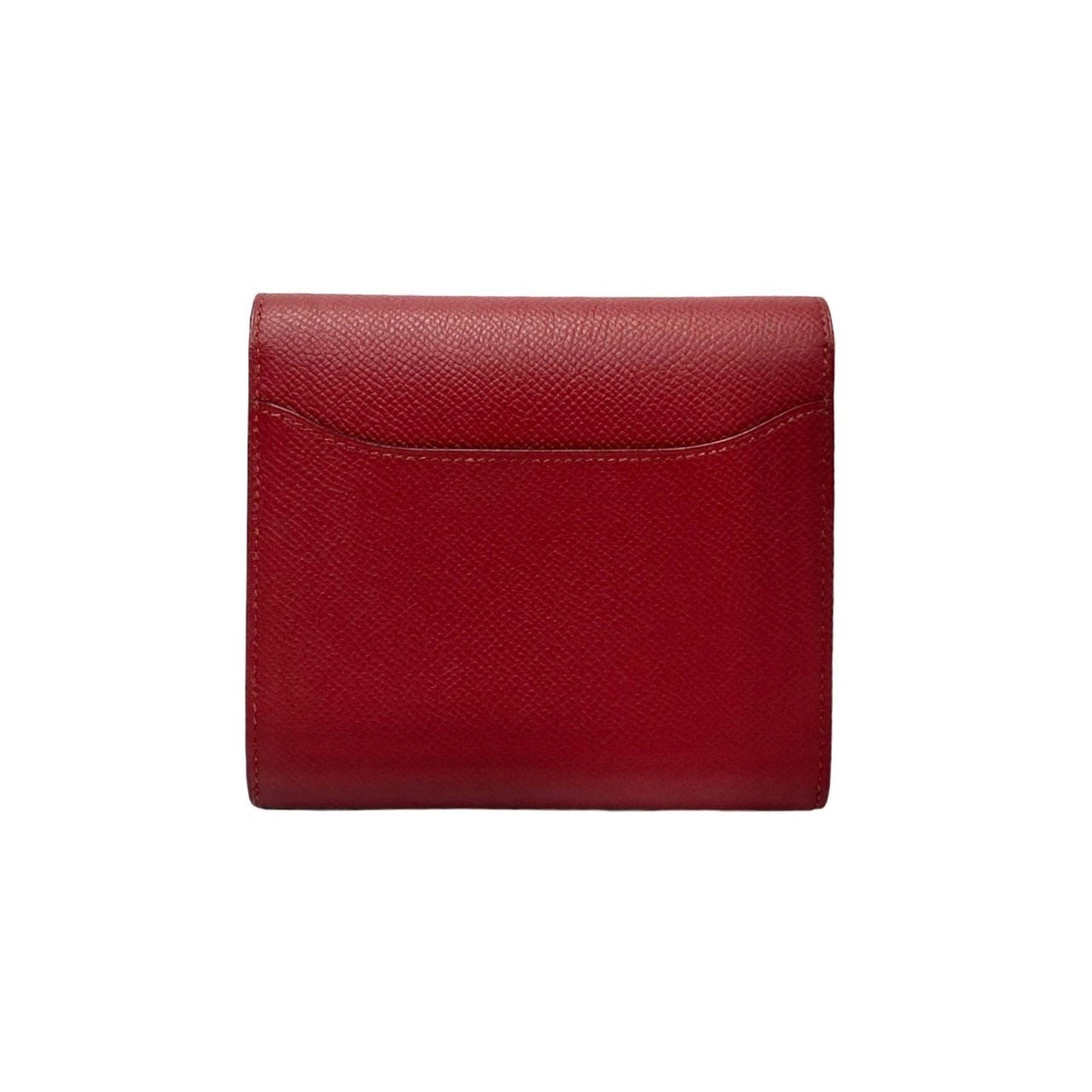 HERMES Constance Compact Leather Bifold Mini Wallet in Rouge Grenat 80153