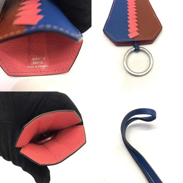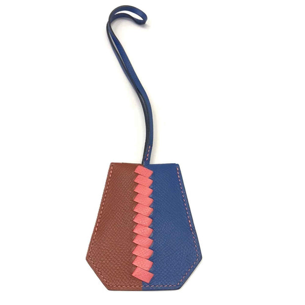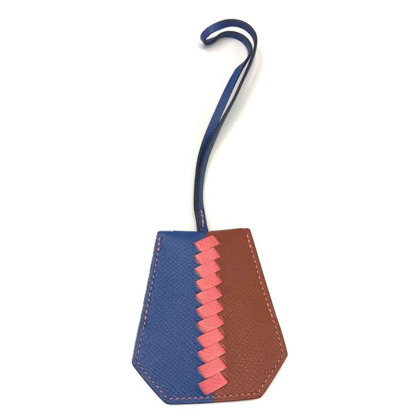 Hermès Crochet Cle Grand Trasage Brick Bleu Zélige Rose Azalee Blue Bag Charm C Stamped HERMES