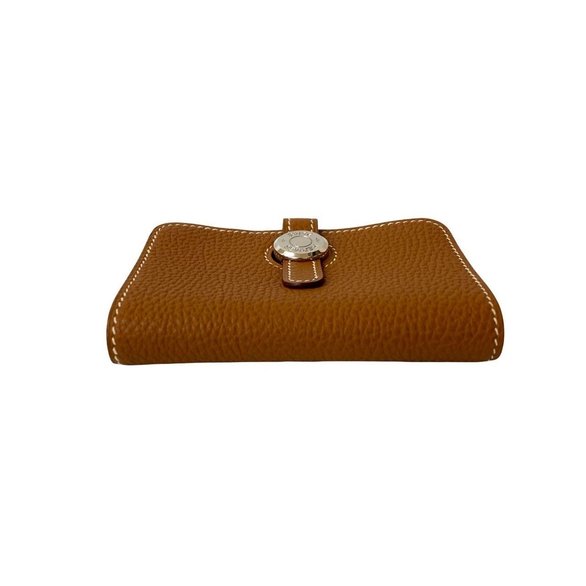 HERMES Dogon Taurillon Clemence Leather Wallet/Coin Purse, Gold, 42183