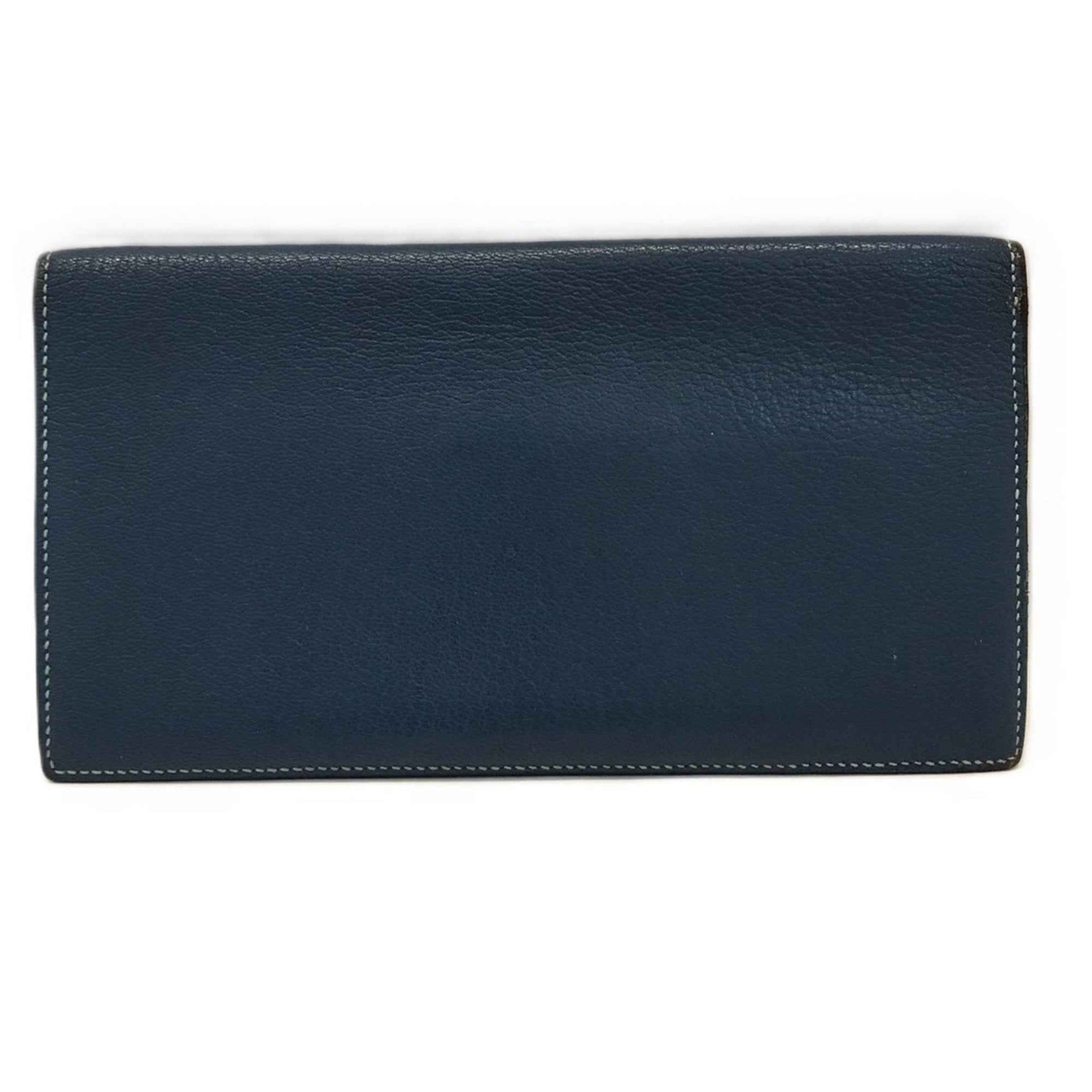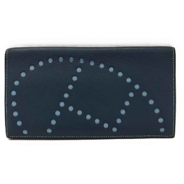 Hermès Evelyn Long Wallet, Chevre Leather, Perforated, Navy Blue, Light □Q Stamped, HERMES