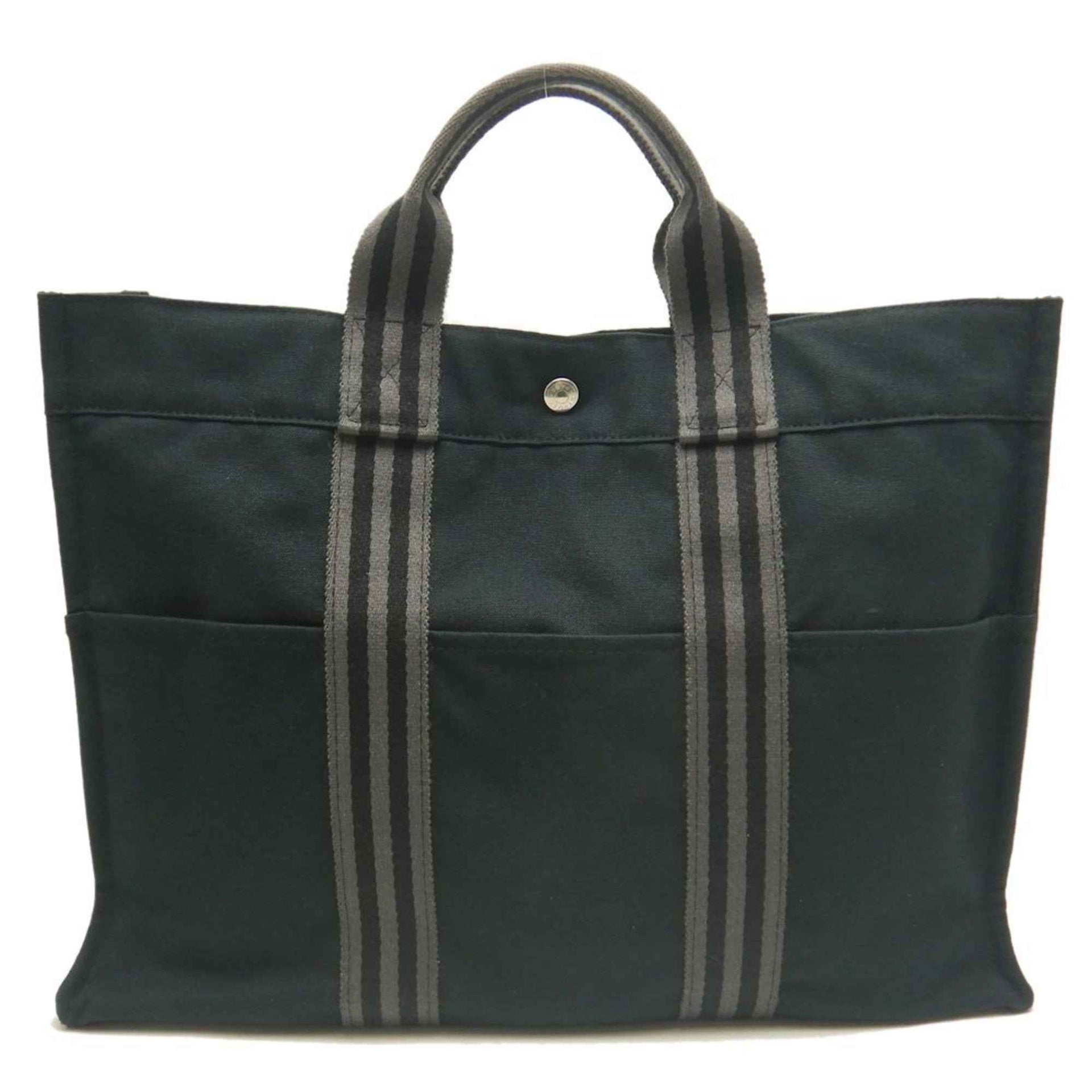 HERMES Foul Tote MM Bag, Cotton, Black and Gray, Men\'s, 253297