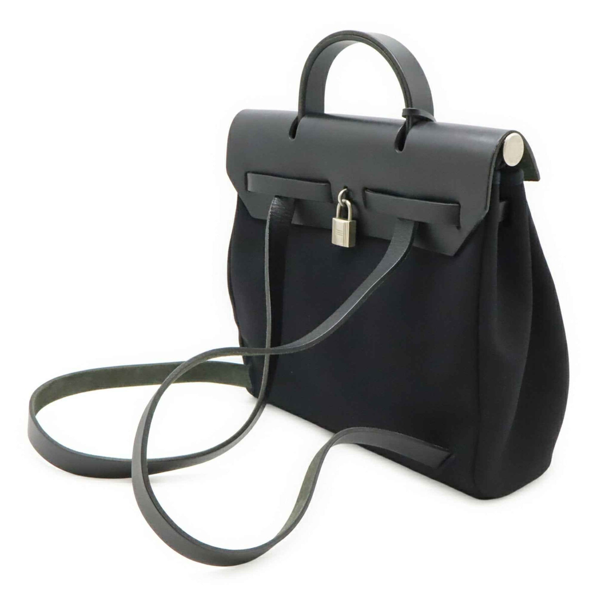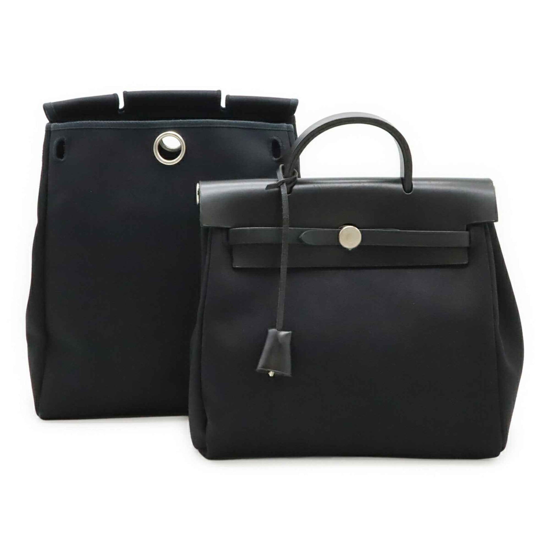 HERMES Hermès Airbag Ad PM Backpack/Handbag, Toile Officier Leather, Black, E Stamp