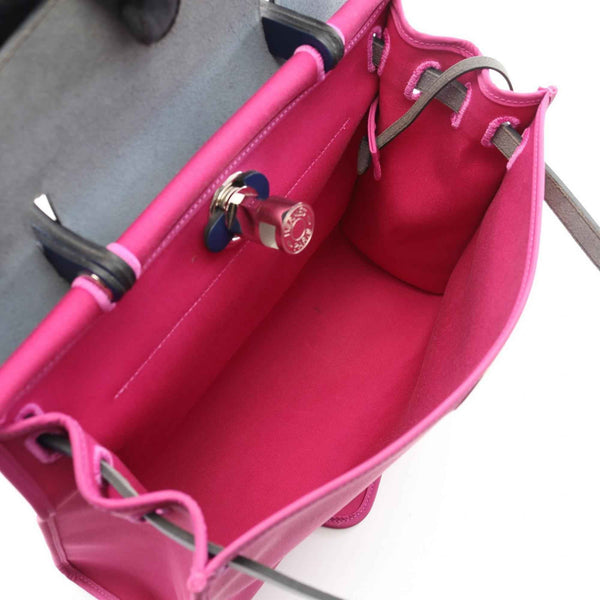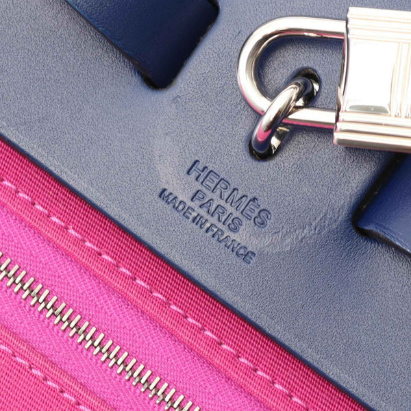 Hermes Hermès Airbag Zip PM Handbag, Canvas and Leather, Toile Officier Vache Hunter, Women\'s, Pink, Navy, Blue Sapphire