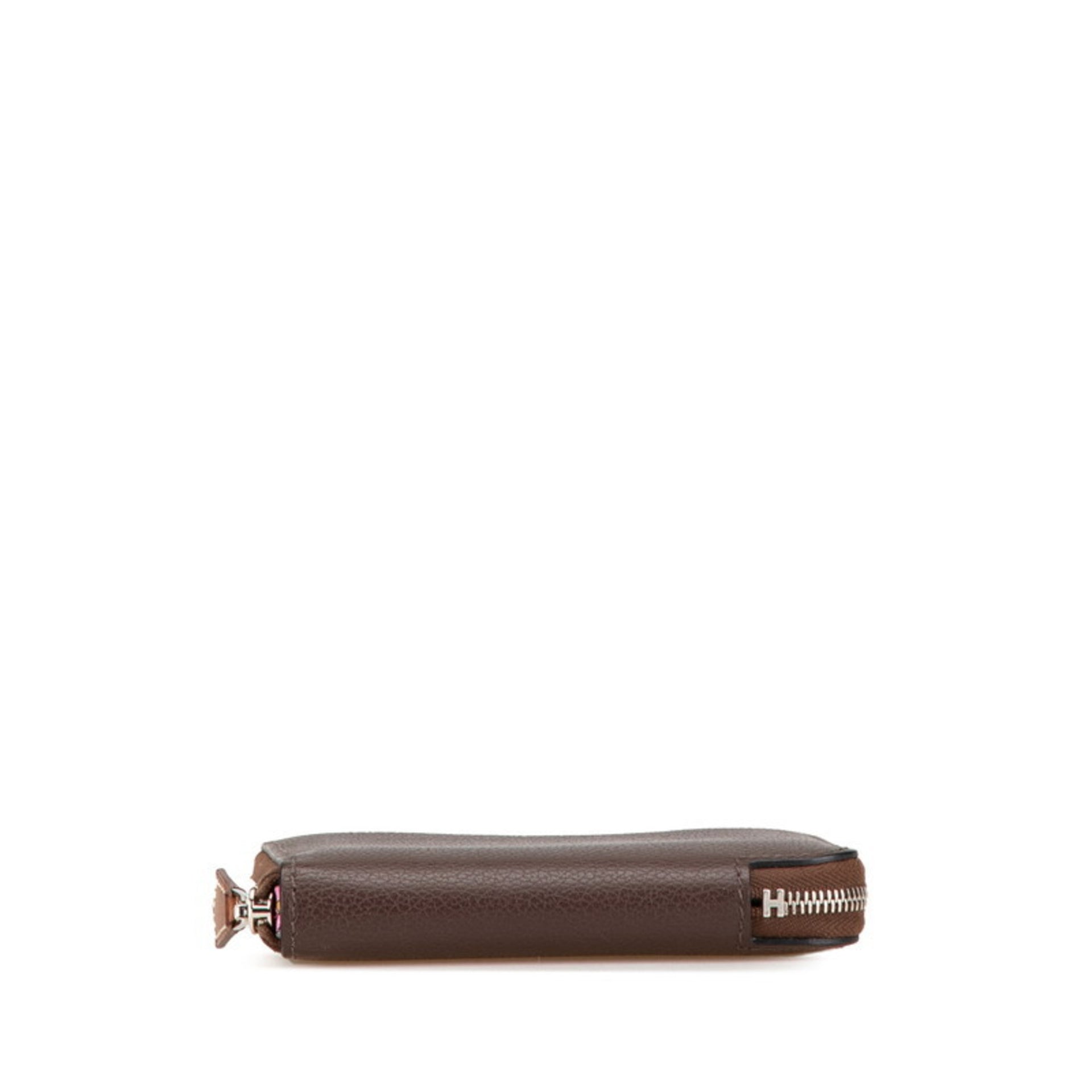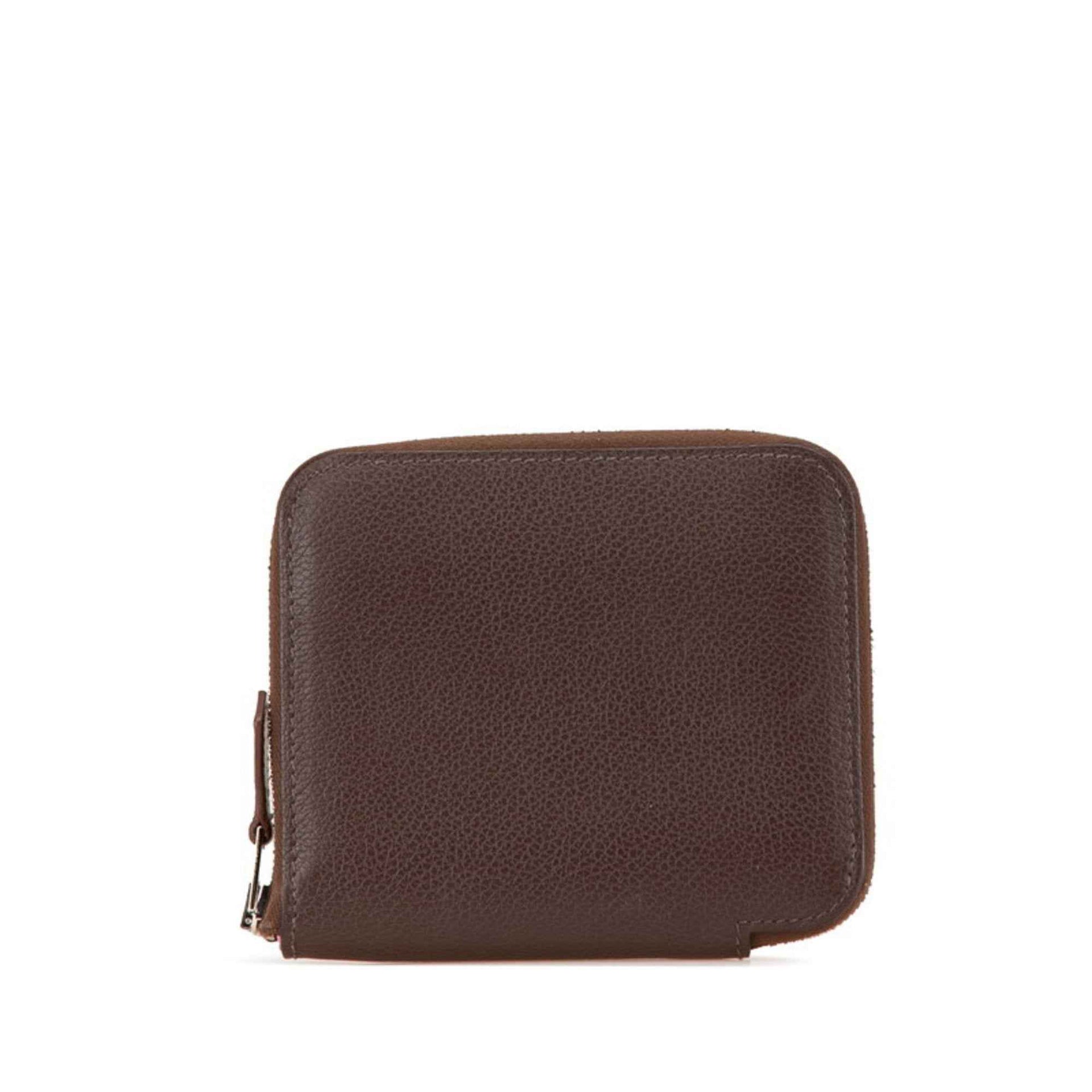 Hermes Hermès Azap Silkin Compact Zip-Around Bifold Wallet in Mocha Brown and Evercolor, Women\'s