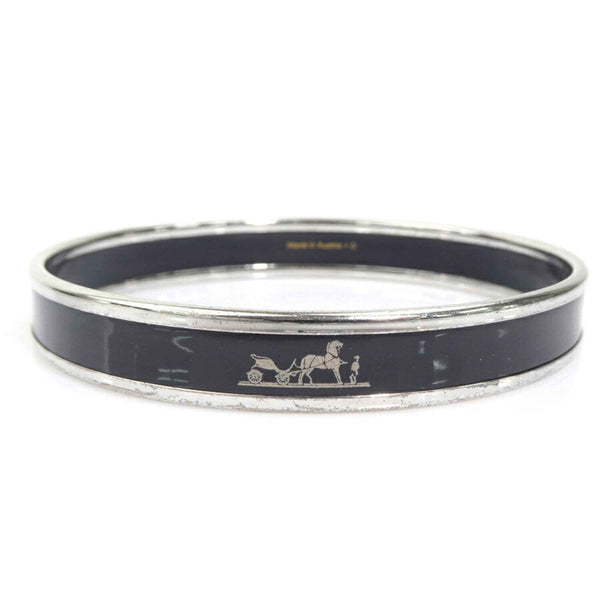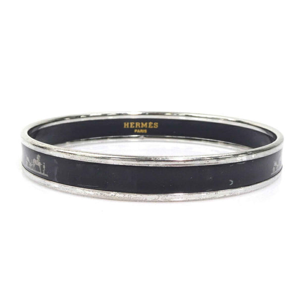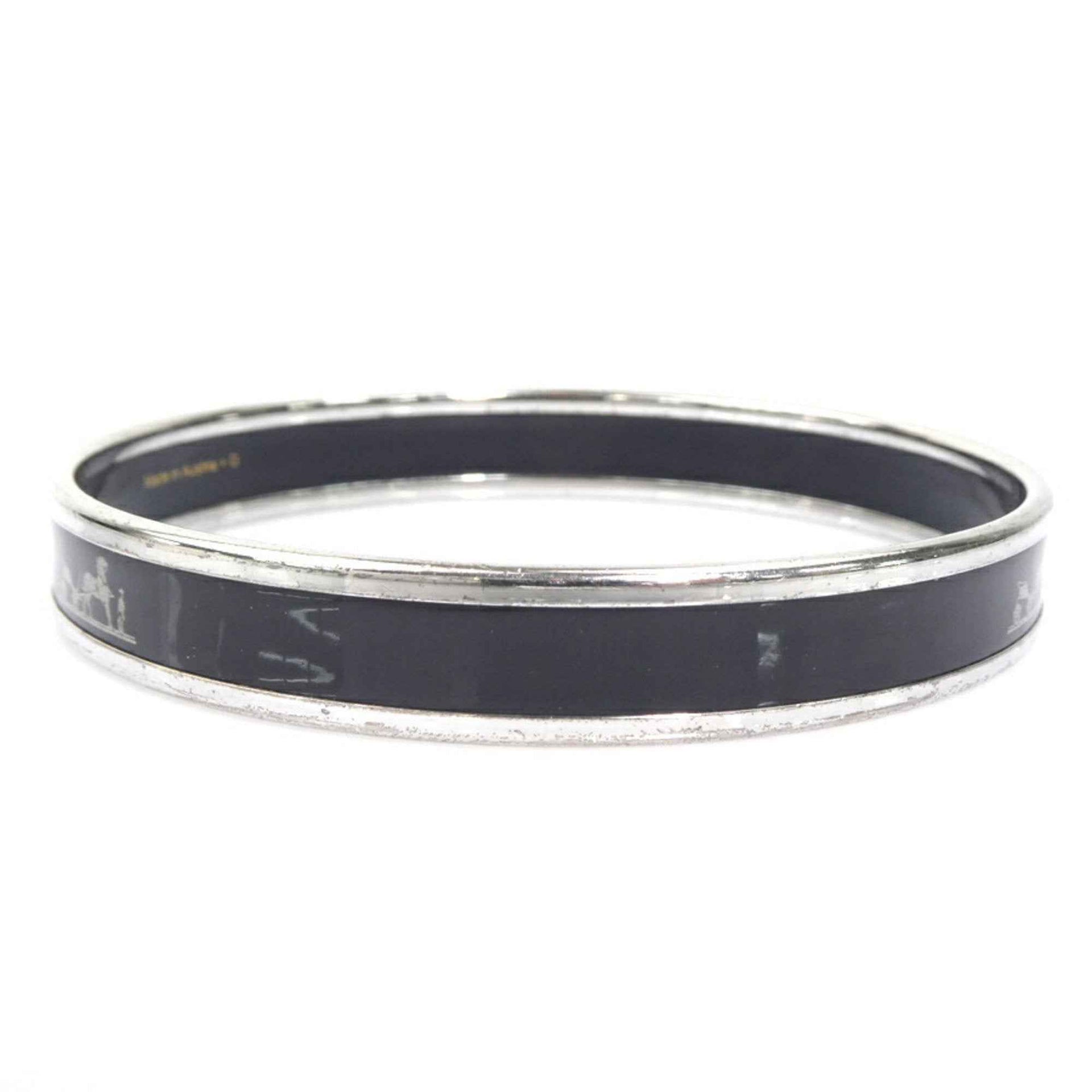 Hermes Hermès bangle bracelet in enamel, metal, silver and black, women\'s, w1299a