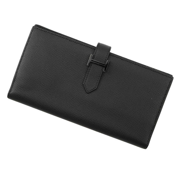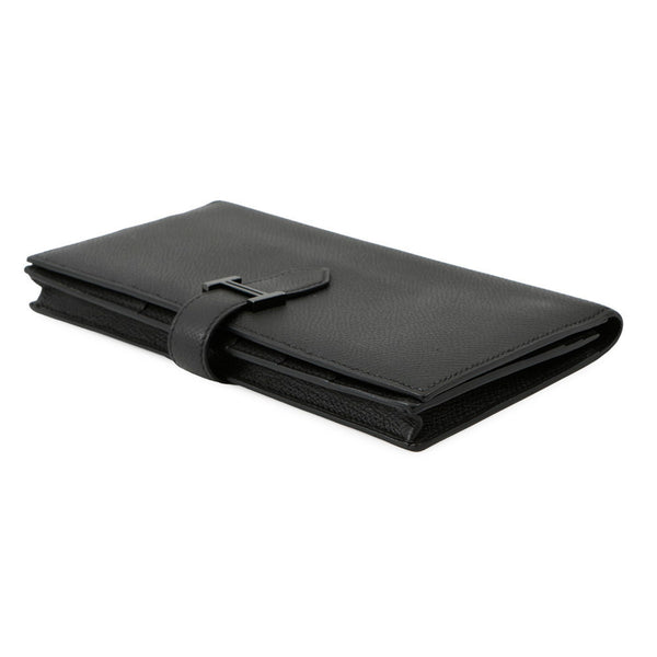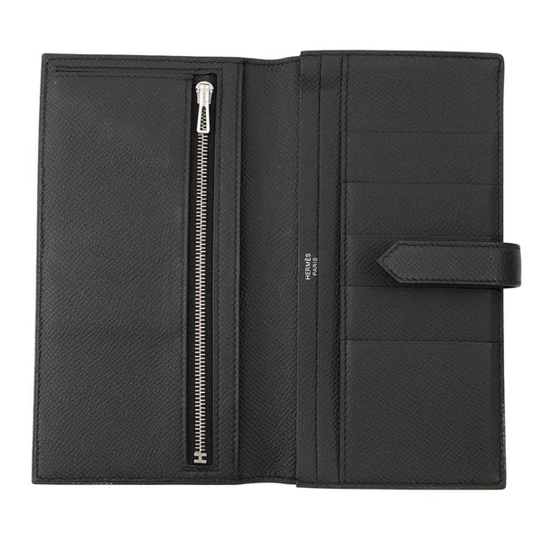 Hermes Hermès Bearn Soufflet long wallet in black with hardware and Epson logo. Also available: monochrome.