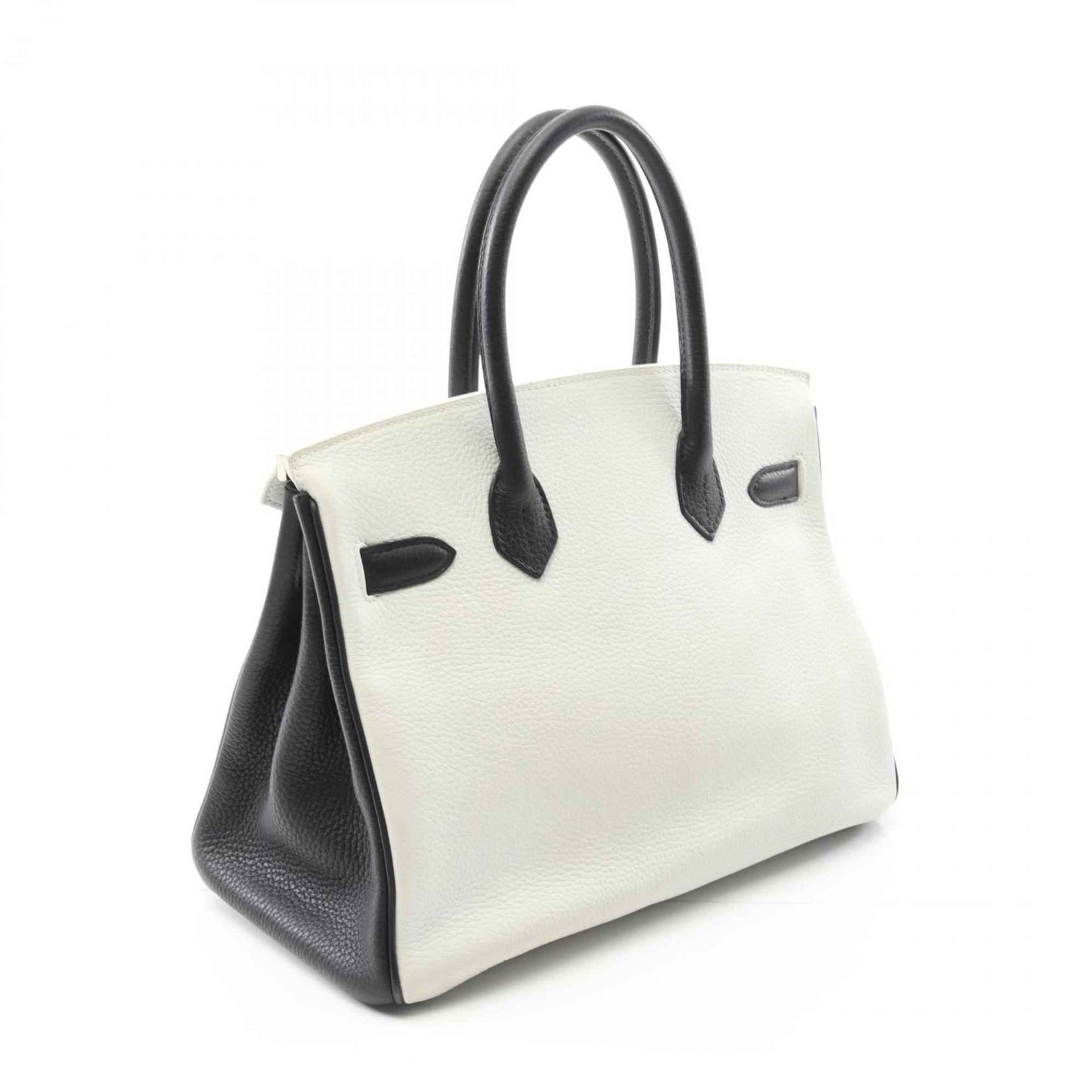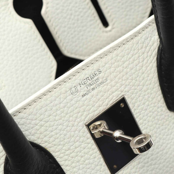 Hermes Hermès Birkin 30 handbag, leather, Taurillon Clemence women\'s, black and white