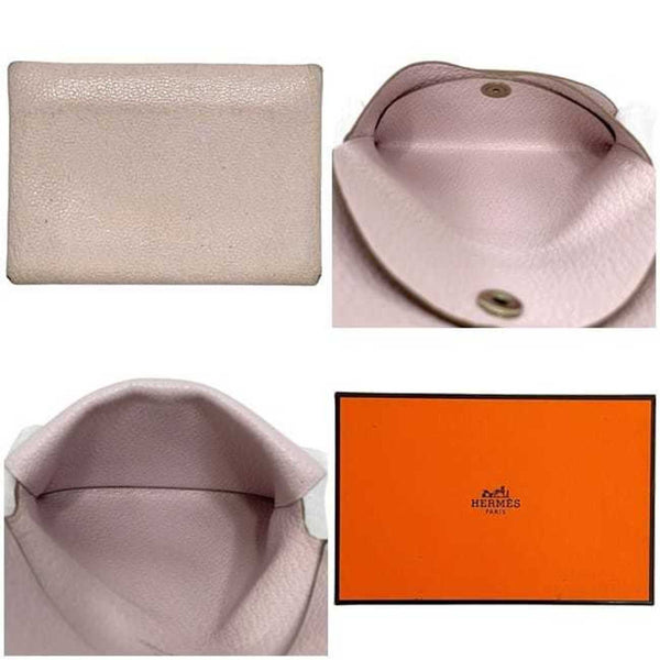 Hermes Hermès Calvi Duo bifold wallet f-23964 in pink mauve pale leather with a coin purse and Chevre Mysore U stamp. 2022. This compact, is perfect for carrying your belongings.