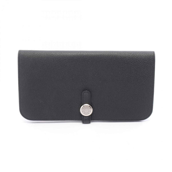 Hermes Hermès Dogon Long Bifold Wallet Leather Togo Women\'s Black