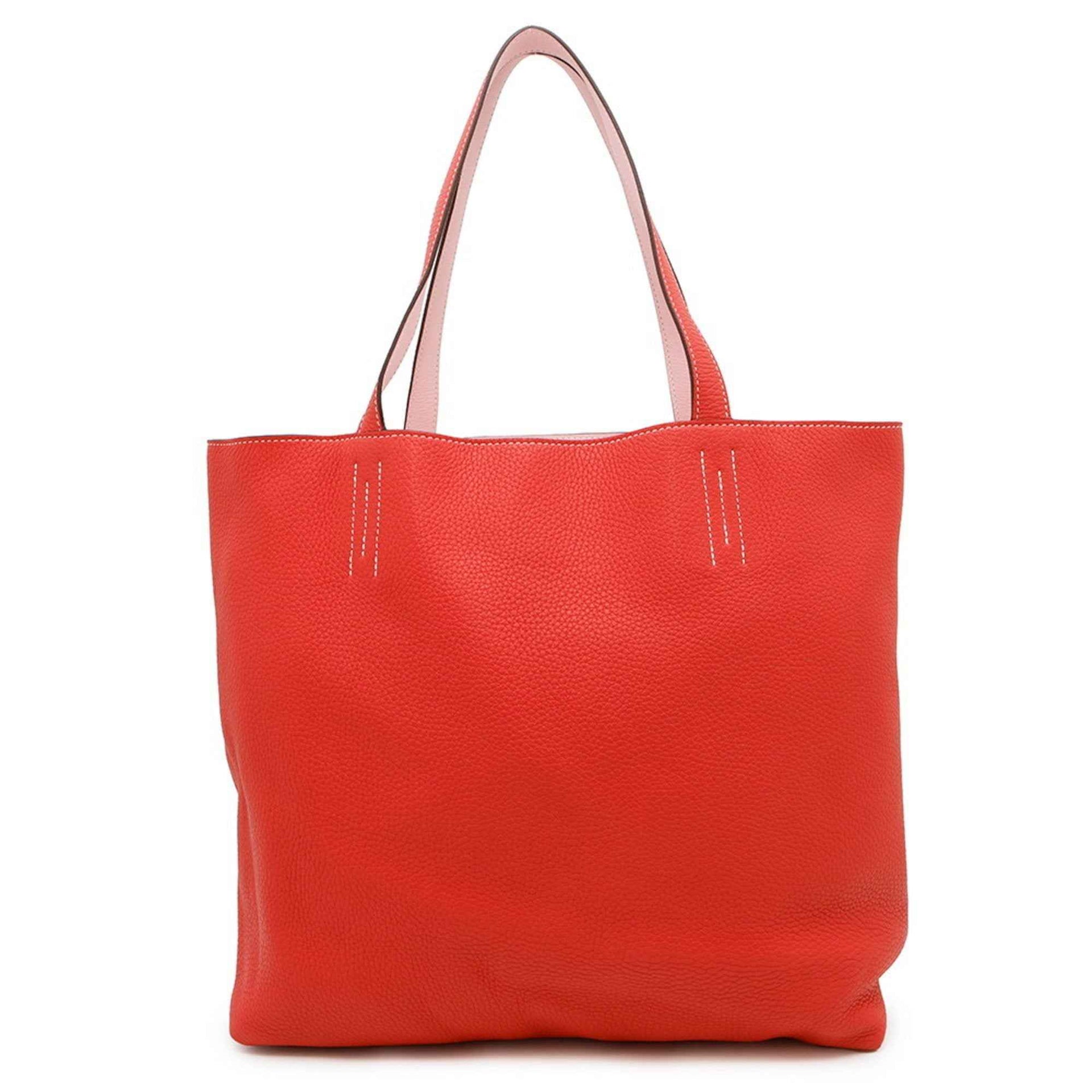 Hermes Hermès Double Sens 36 Tote Bag in Rouge Pivoine, Rose Sakura, Taurillon Clemence, and Swift Leather with a T Stamp