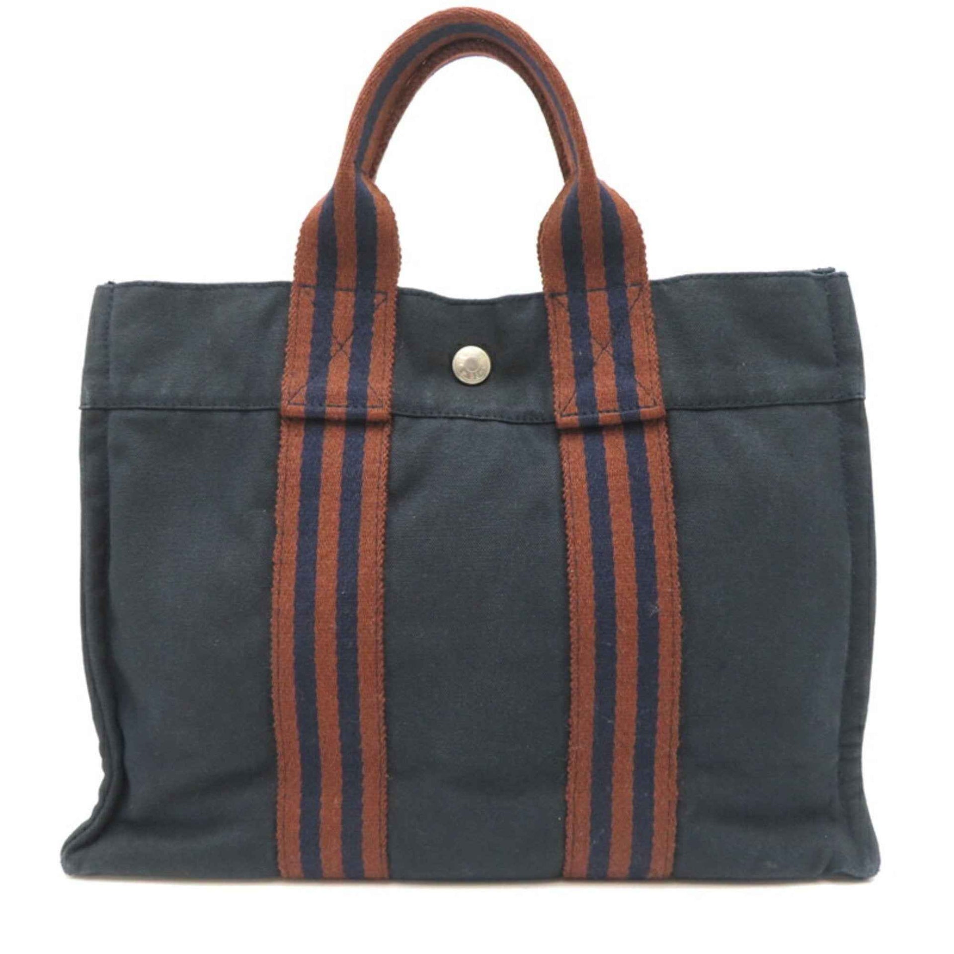 Hermes Hermès Foul Tote PM Women\'s Bag, 100% Cotton, Navy