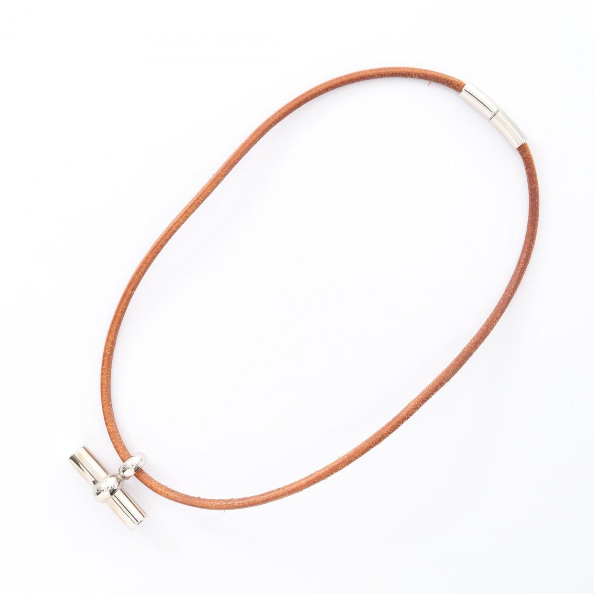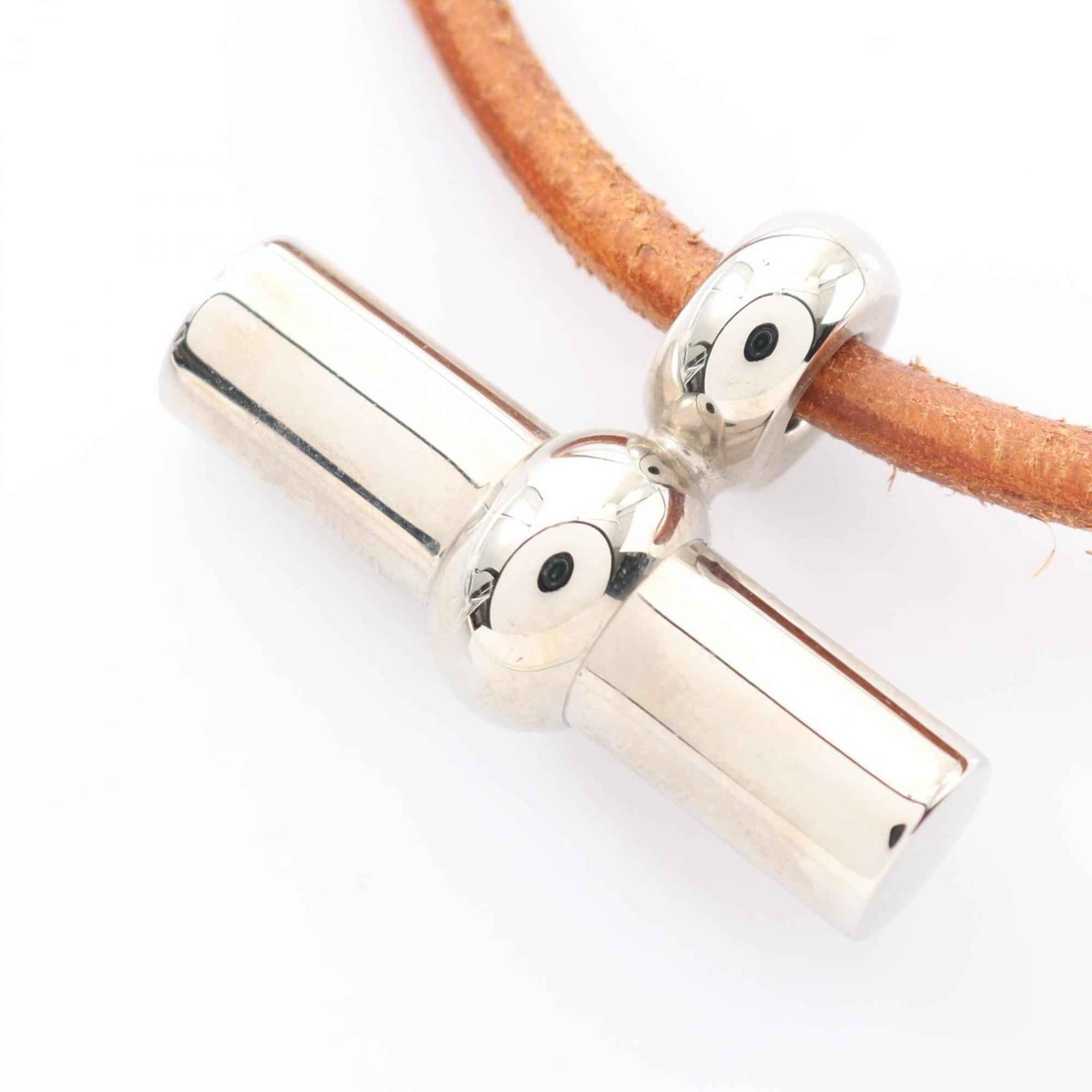 Hermes Hermès Grennan Choker Accessory, Leather GP (Gold Plated), Women\'s, Brown and Silver