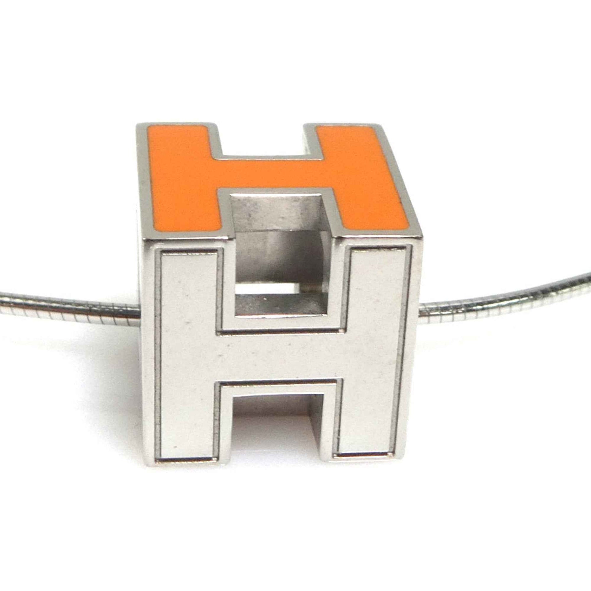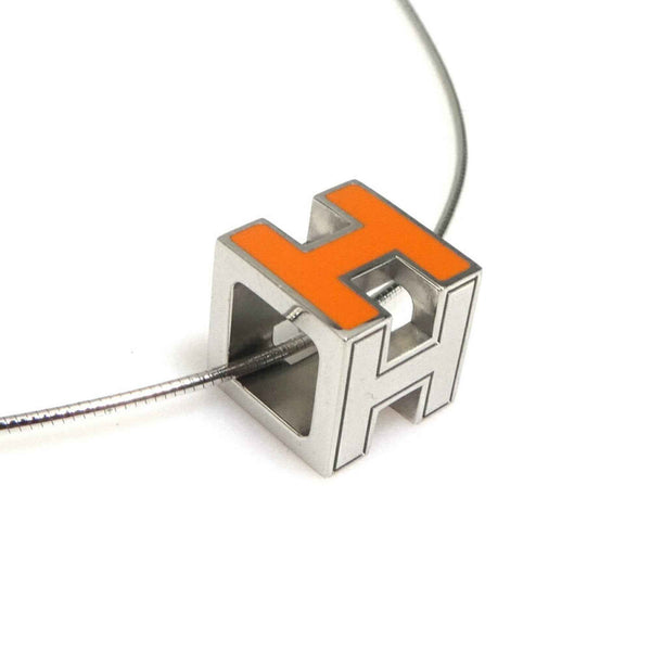 Hermes Hermès H Cube Necklace, Cartier Ash, Metal, Enamel, Silver, Orange, Women\'s, e61027g