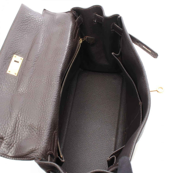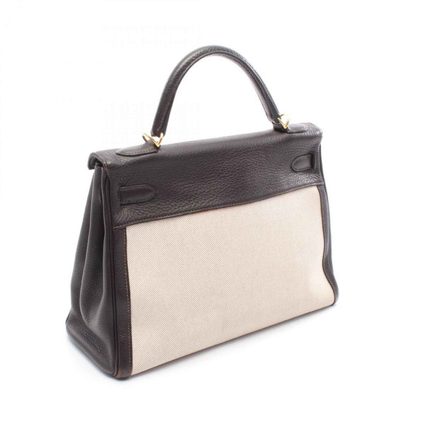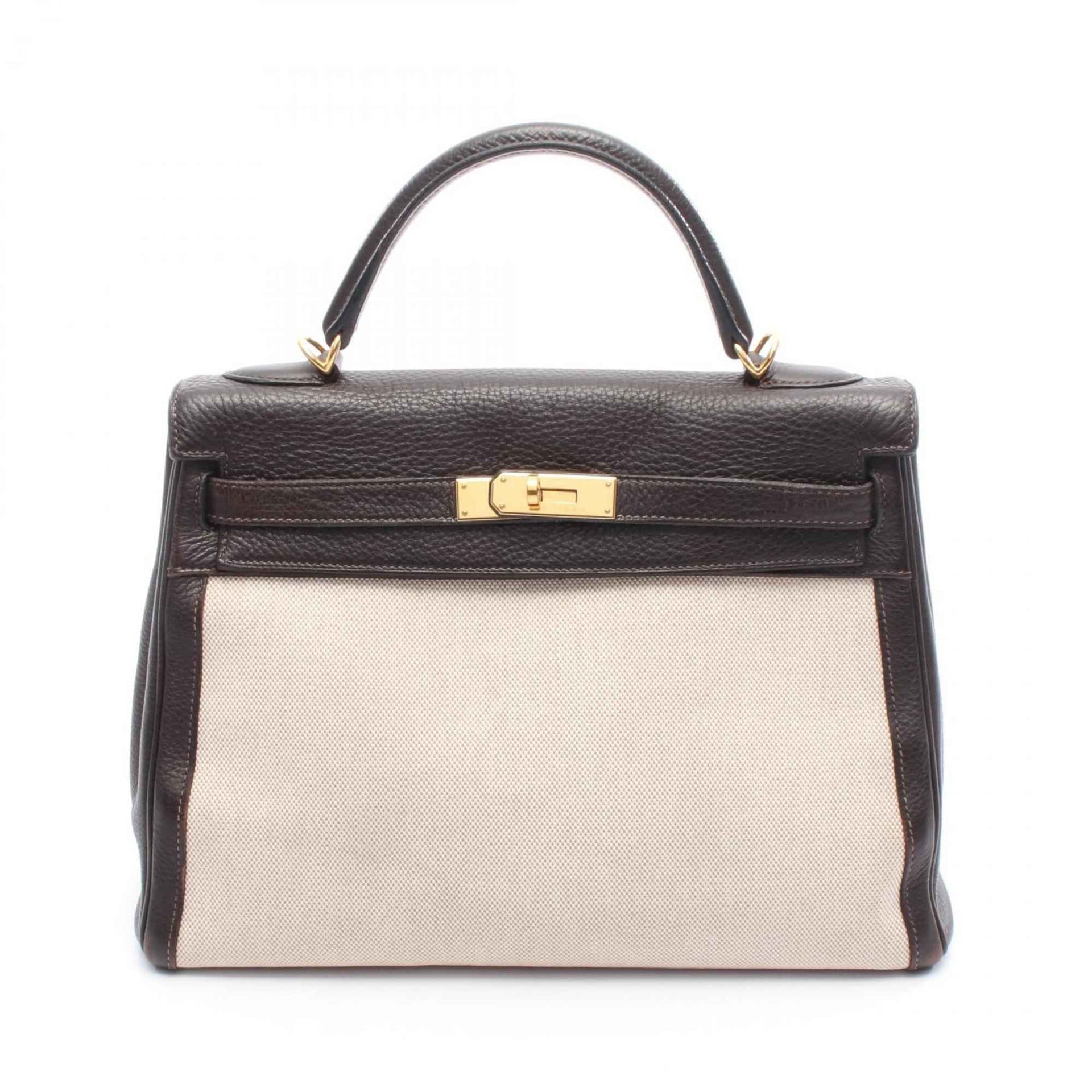 Hermes Hermès Kelly 32 handbag, canvas and leather, Toile H Togo H, women\'s, beige brown.