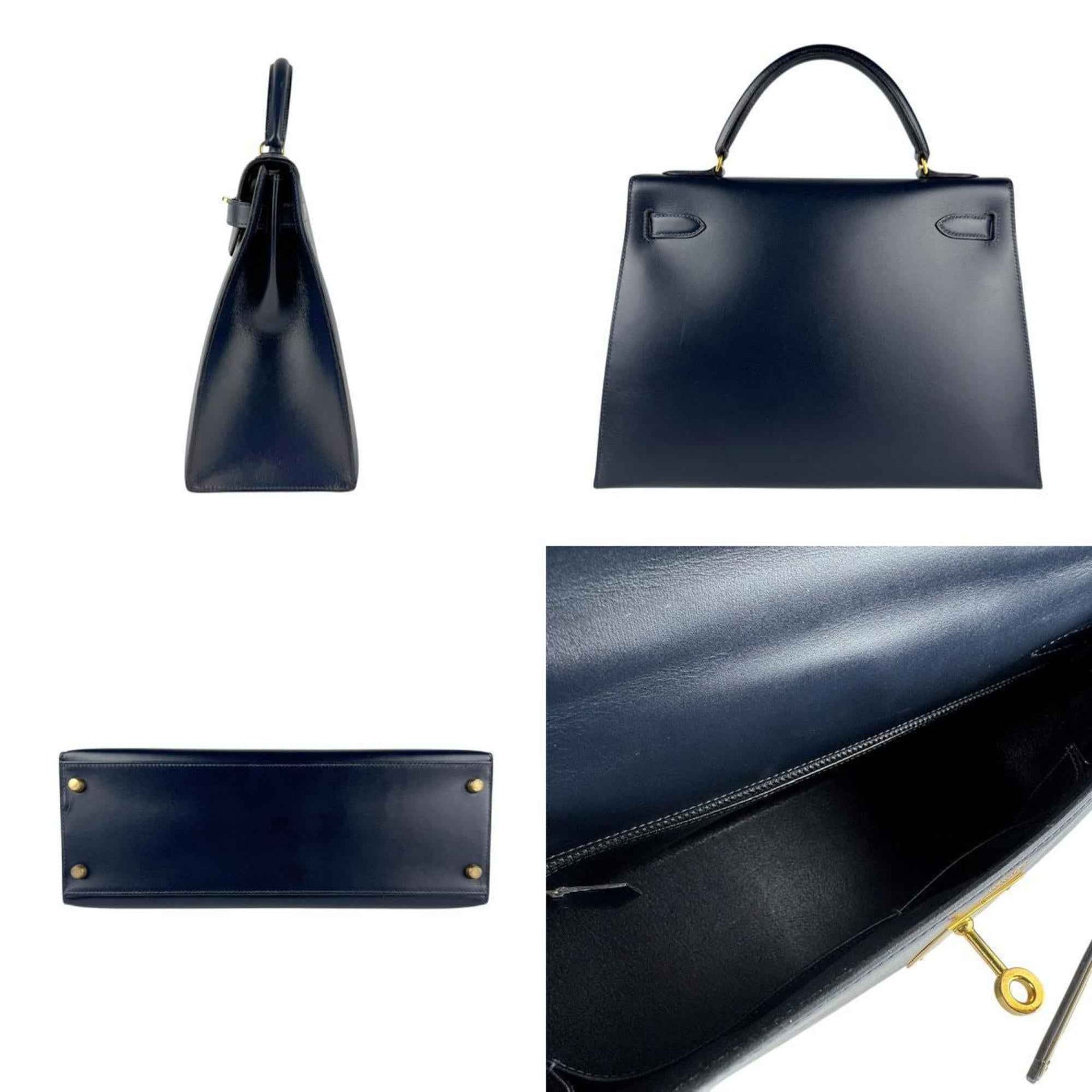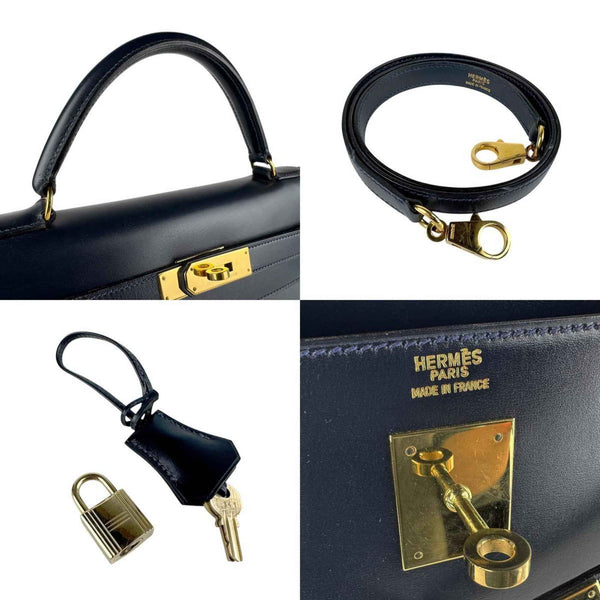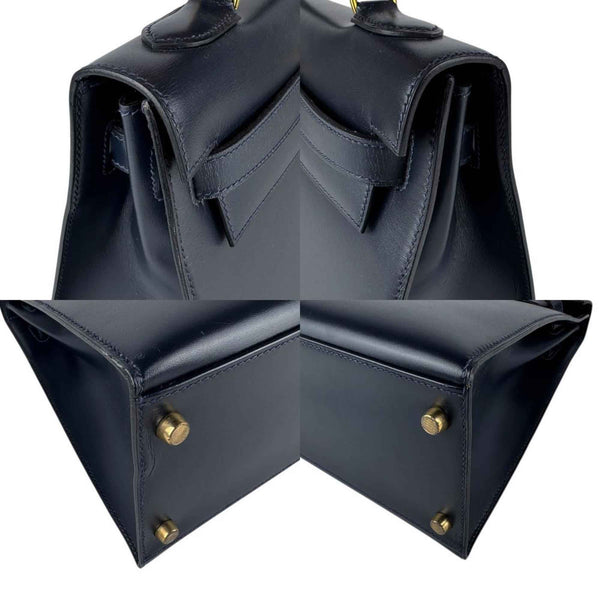 Hermes Hermès Kelly 32 Handbag/Shoulder Bag, Box Calf Leather, Blue Indigo and Gold, Women\'s, Z7315