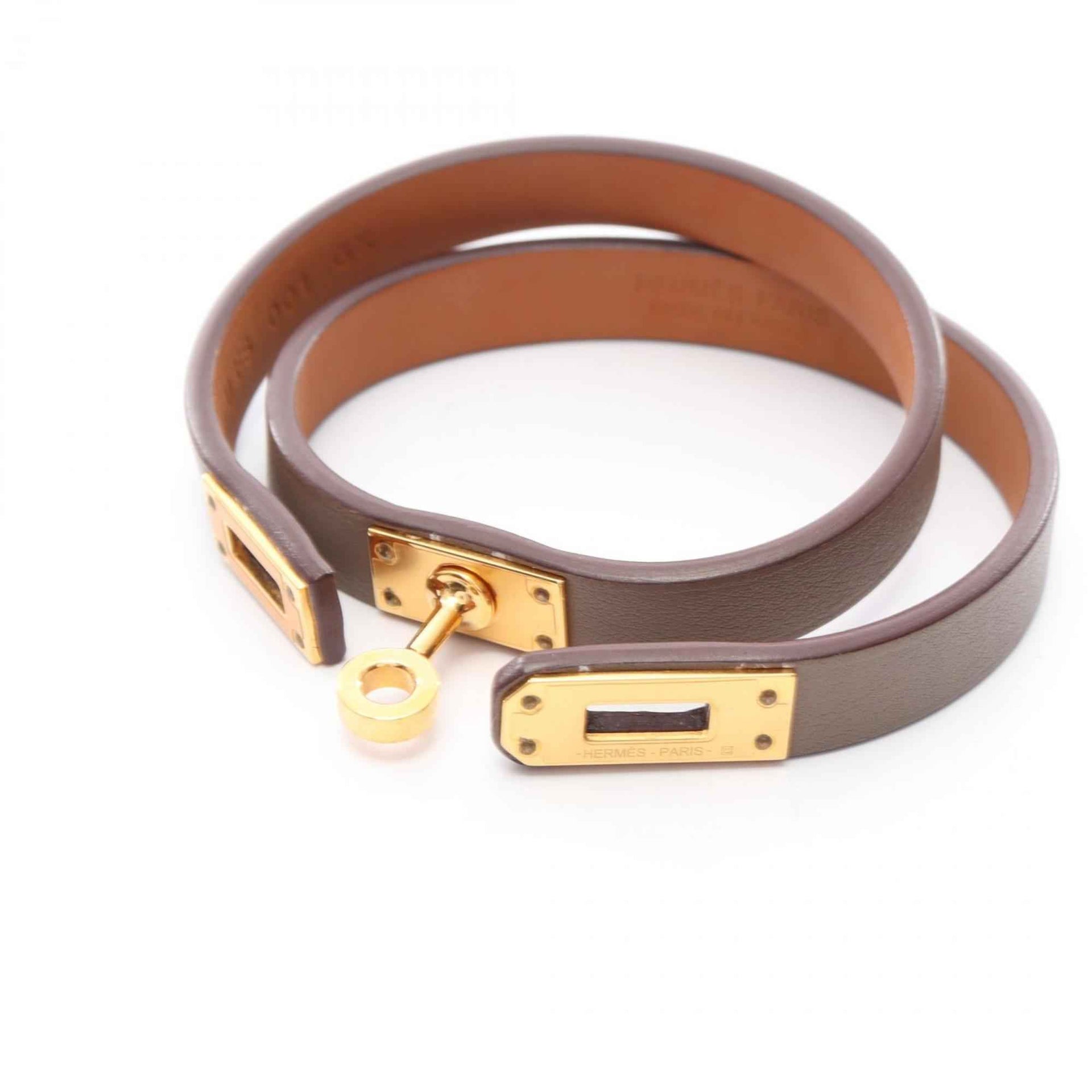Hermes Hermès Kelly Double Tour Etoupe Bracelet, GP (Gold Plated), Leather, Women\'s, Gold and Brown