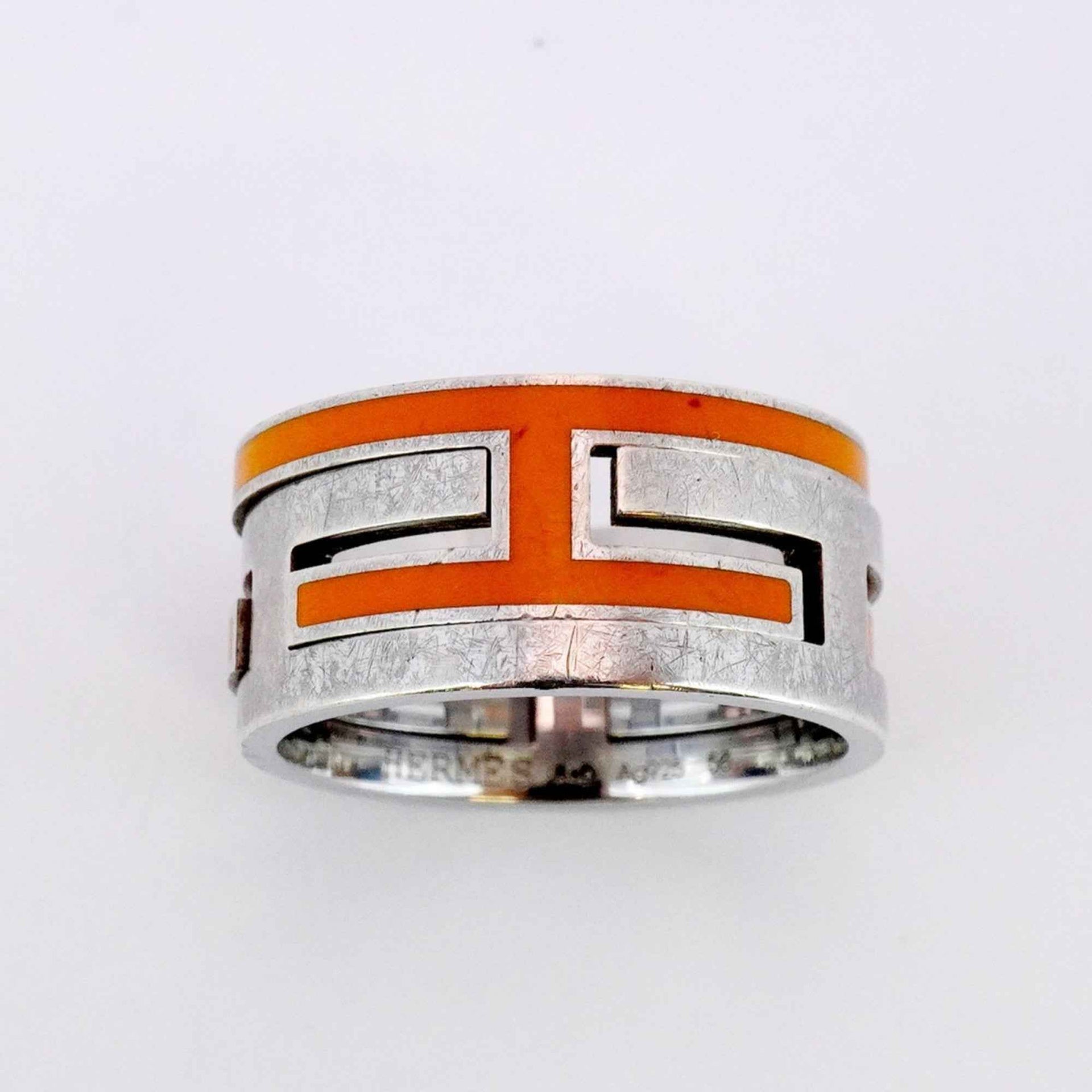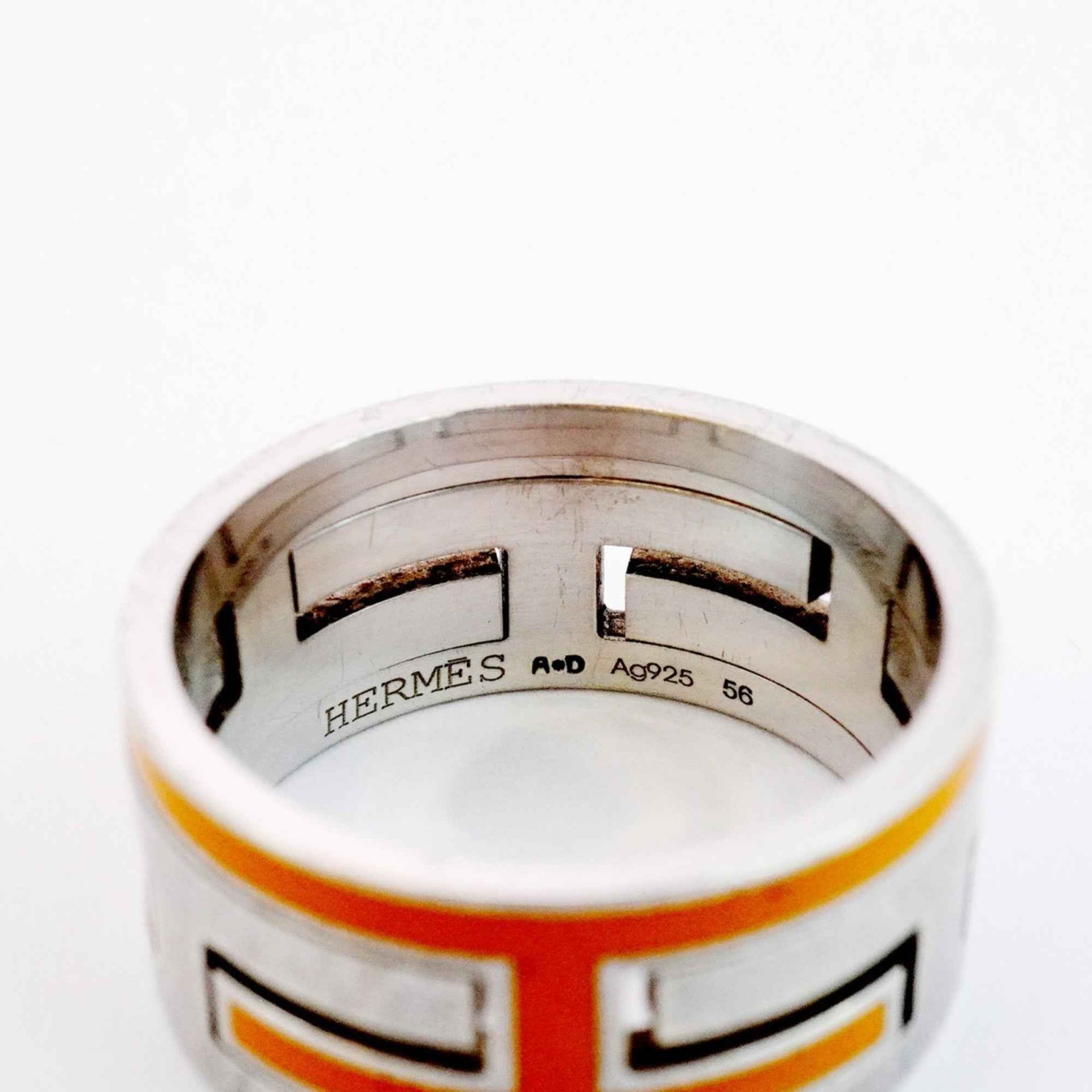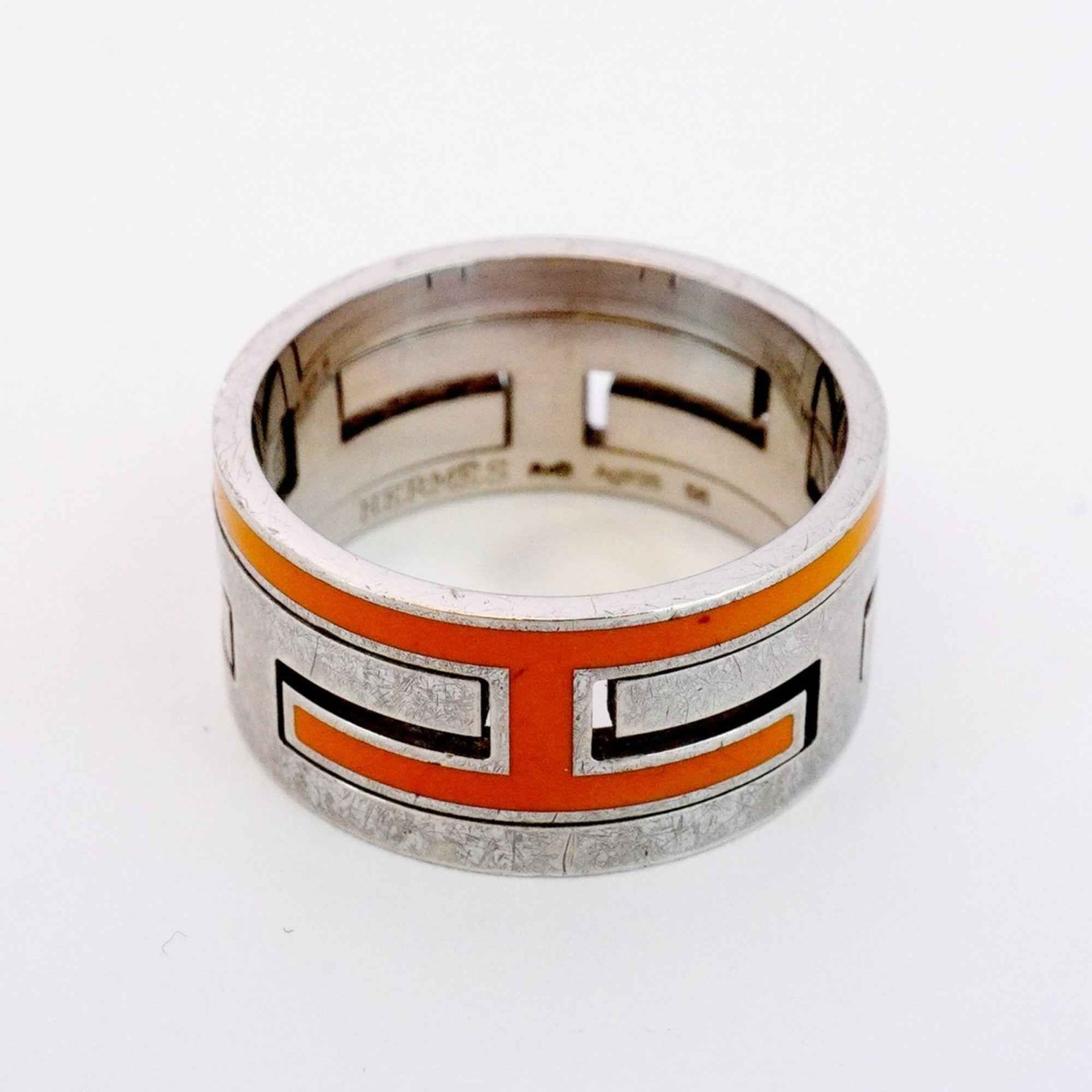 Hermes Hermès Move Ash Ring, Silver 925, Orange, #56, Men\'s