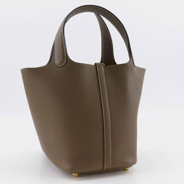 Hermes Hermès Picotin Lock 18 PM Handbag in Taurillon Clemence Etoupe Leather, 2022, with U-shaped Strap Clasp, Women\'s, S160625320